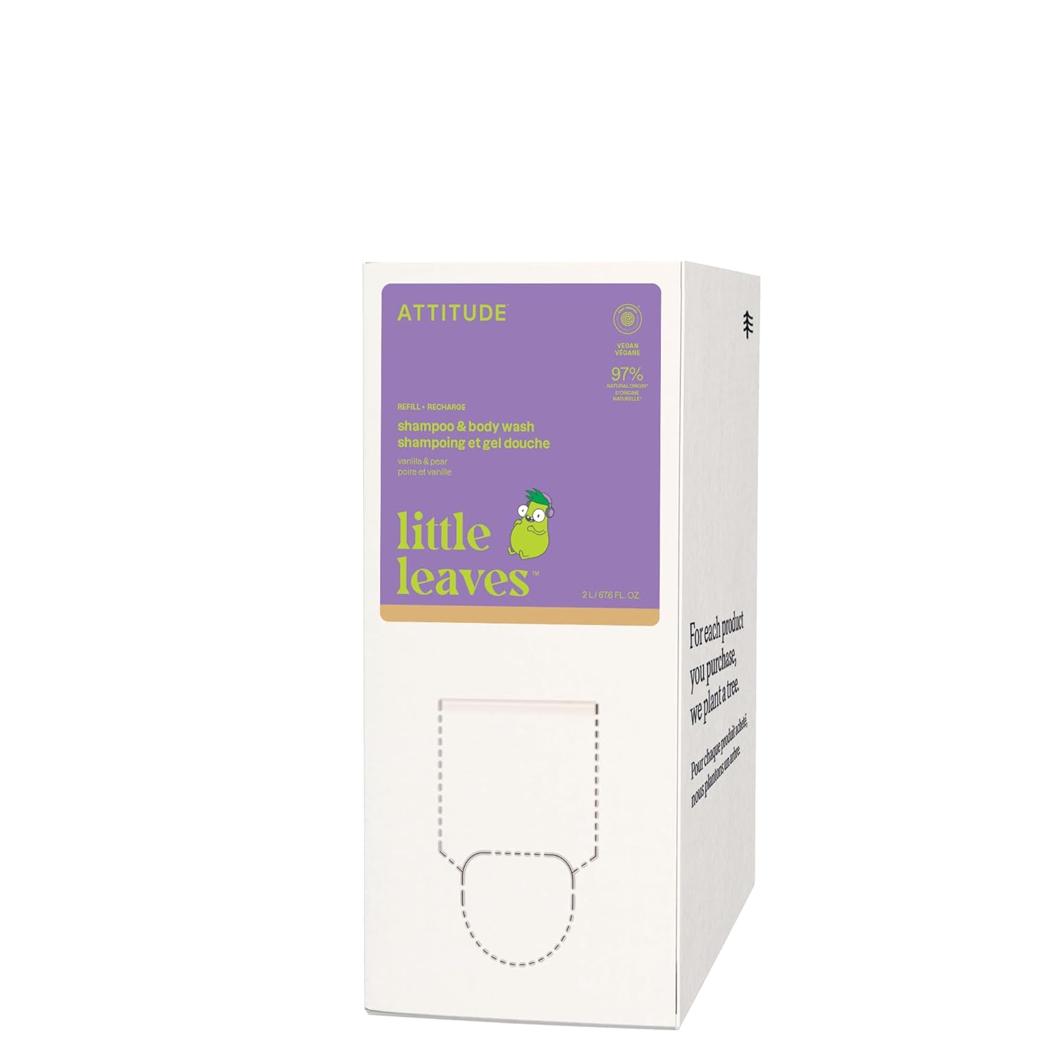ATTITUDE Shampoo and Body Wash for Kids, EWG Verified Hair and Body Cleanser, Dermatologically Tested Soap, Plant and Mineral Based Bath Products, Vegan, Bulk Refill, Vanilla and Pear, 67.6 Fl Oz