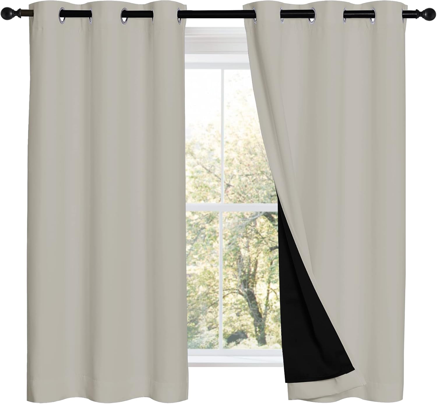 NICETOWN 100% Blackout Curtains 54 inches Long, Double-Deck Completely Blackout Window Treatment Thermal Insulated Lined Drapes for Small Window (Natural, 1 Pair, 42 inches Width Each Panel)