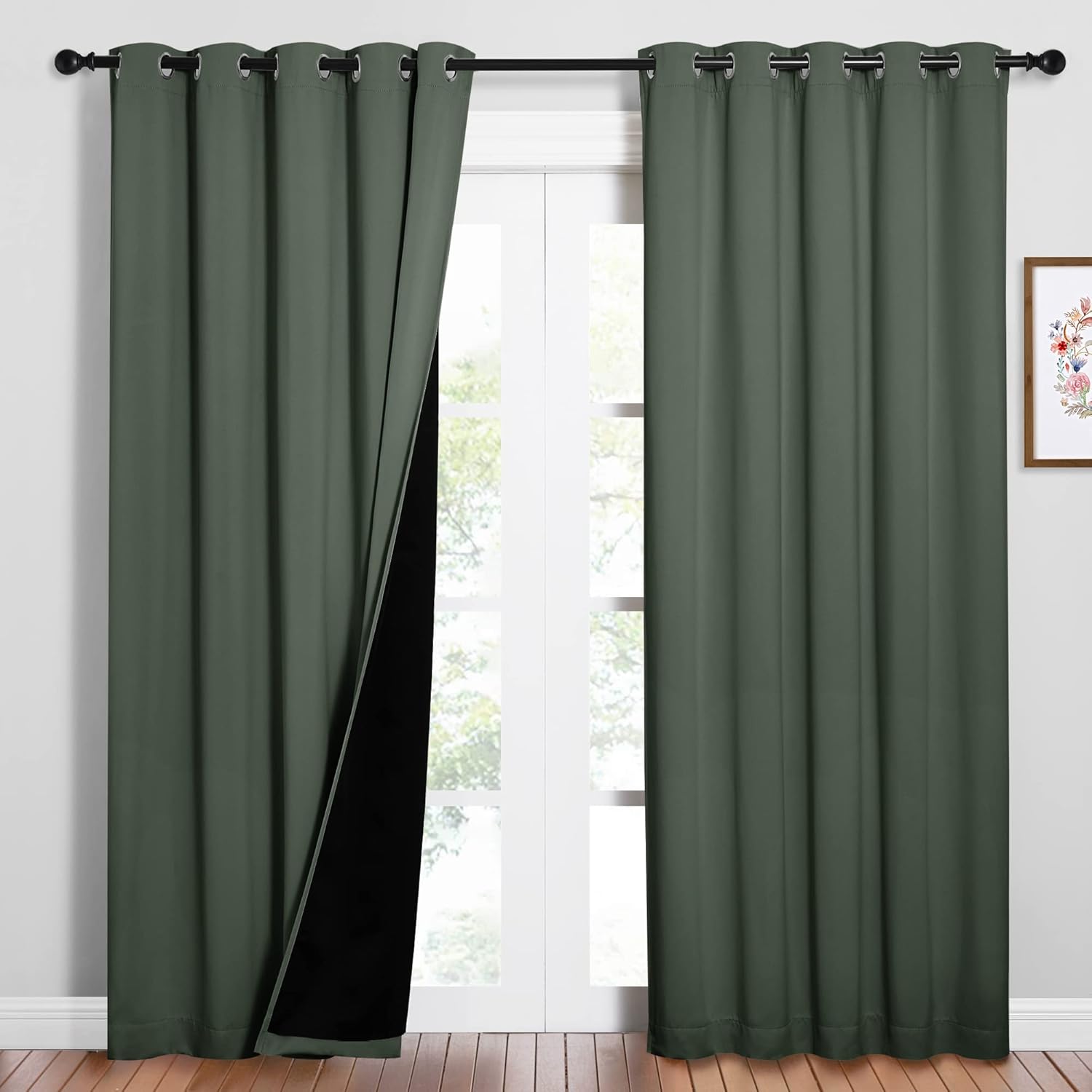 NICETOWN 100% Blackout Window Curtain Panels, Cold and Full Light Blocking Drapes with Black Liner for Nursery, 84 inches Drop Thermal Insulated Draperies (Dark Mallard, 2 PCs, 62" Wide Each Panel)