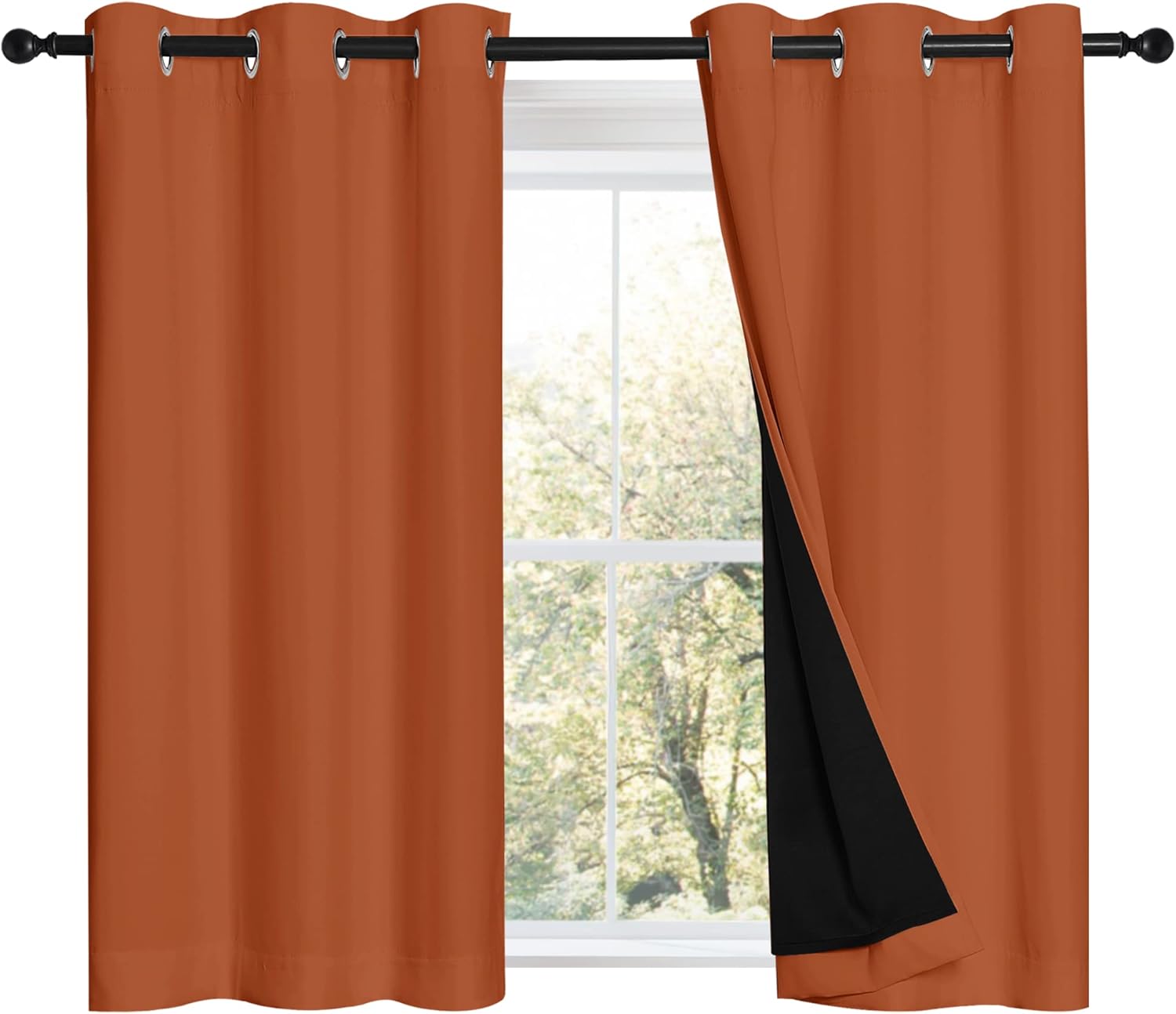 NICETOWN Burnt Orange 100% Blackout Curtains 45 inches Long, 2 Thick Layers Completely Blackout Window Treatment Thermal Insulated Lined Drapes for Small Window (1 Pair, 42 inches Width Each Panel)