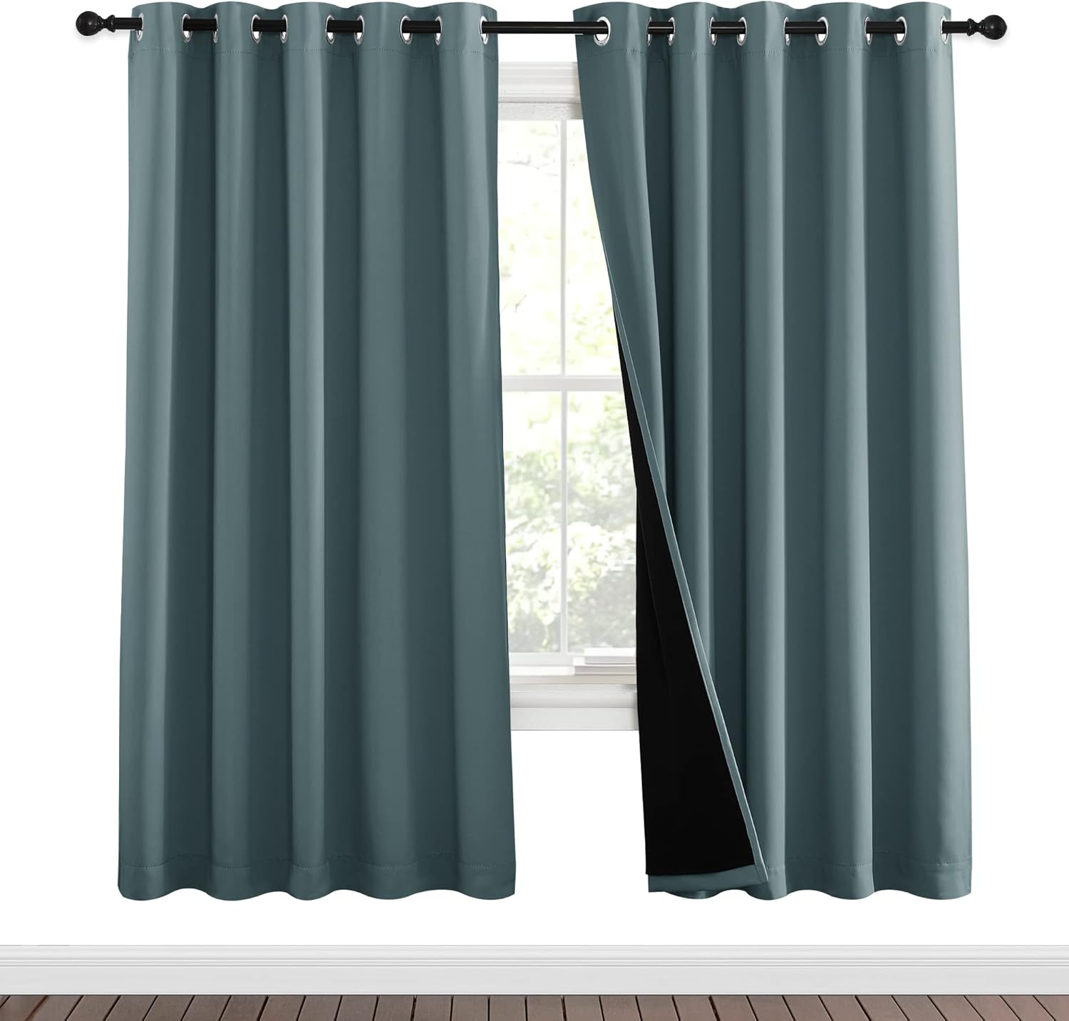NICETOWN 100% Blackout Window Curtain Panels, Full Light Blocking Drapes with Black Liner for Nursery, 72-inch Drop Thermal Insulated Draperies (Aqua, 2 Pieces, 62-inch Wide Per Panel)