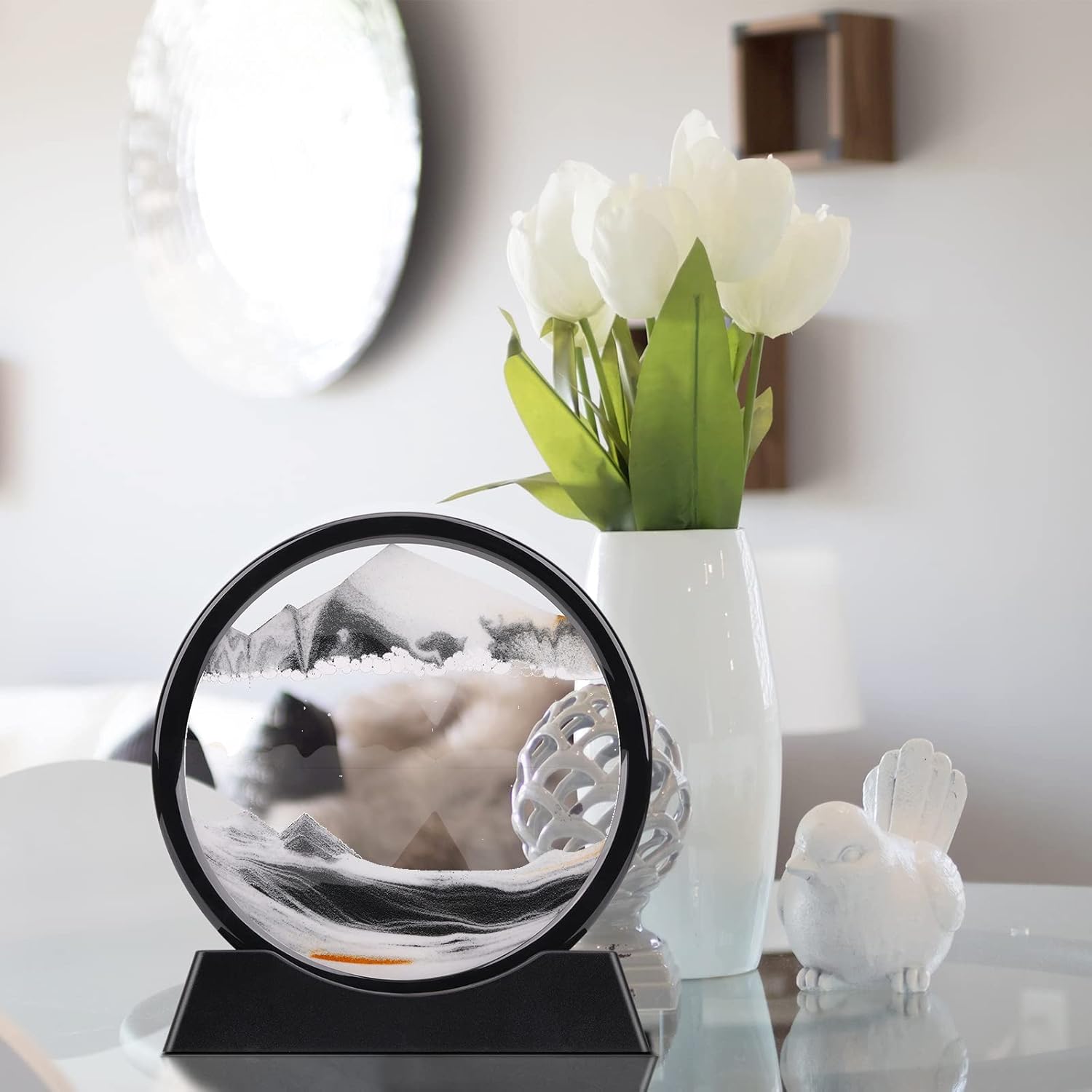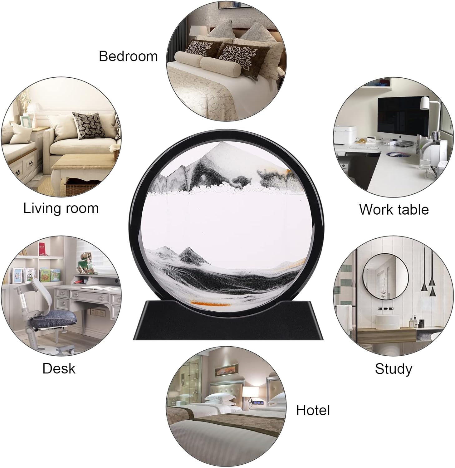 - SAND ART DÉCOR:The perfect home/office desk decoration. A natural landscape painting makes your decorative environment in the middle of landscape, quiet, natural, elegant and indifferent. Watching the different sandscape pictures formed with the flowing of sand, you can feel the magic of the creator, and every change is so natural and beautiful