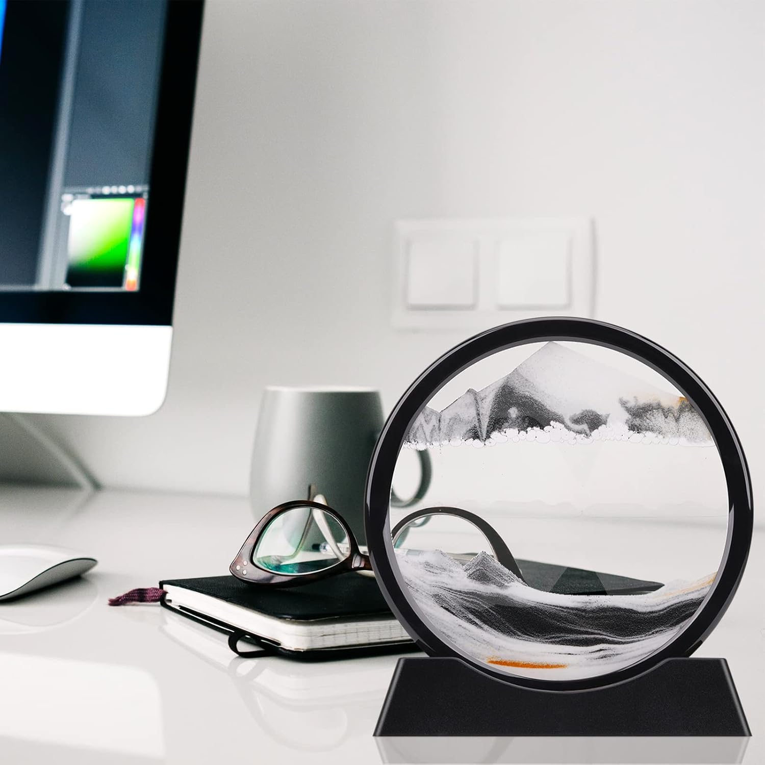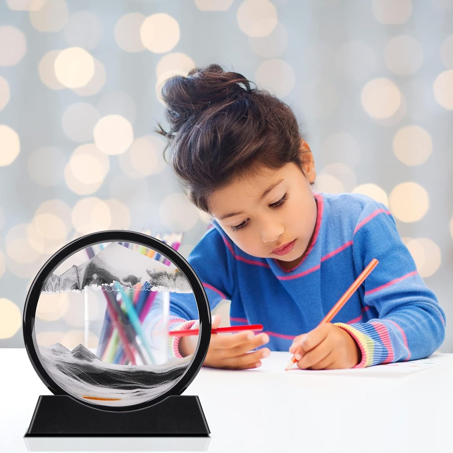- CALMING SENSORY TOY: Moving sand pictures create a new sand picture with each turn.The sand never makes the same design twice. Watching the colored sand slowly tumble down the circle is relaxing and calming to the mind, which can relieve stress, relax your eyes,cultivate patience. give you unexpected surprise