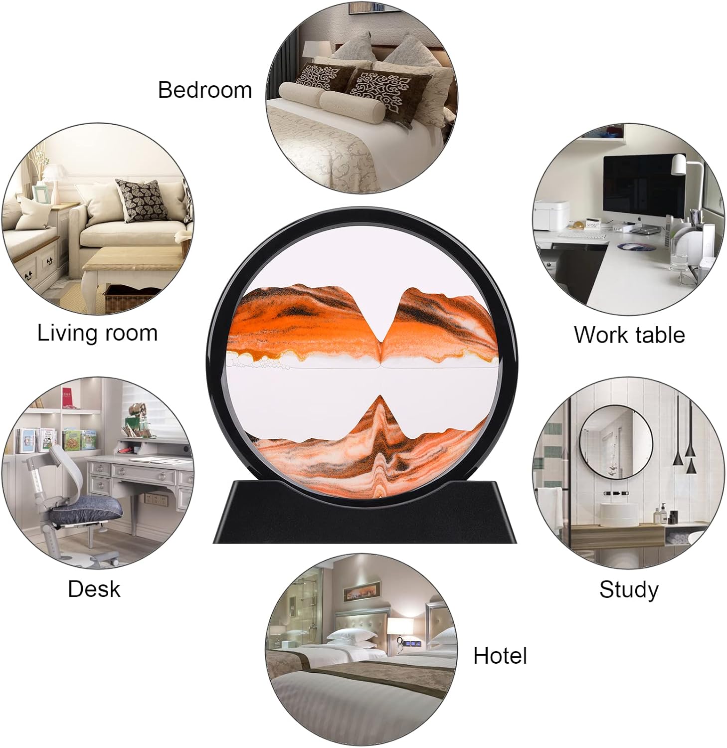 - CALMING SENSORY TOY: Moving sand pictures create a new sand picture with each turn.The sand never makes the same design twice. Watching the colored sand slowly tumble down the circle is relaxing and calming to the mind, which can relieve stress, relax your eyes,cultivate patience. give you unexpected surprise
