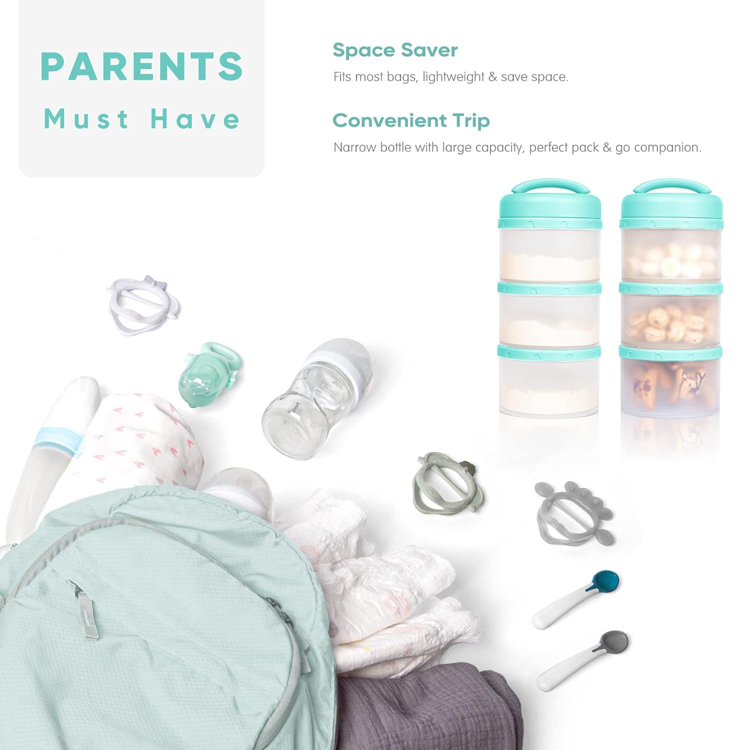 Termichy Stackable Formula Dispenser Portable Milk Powder Container, 2 Pack, Mint