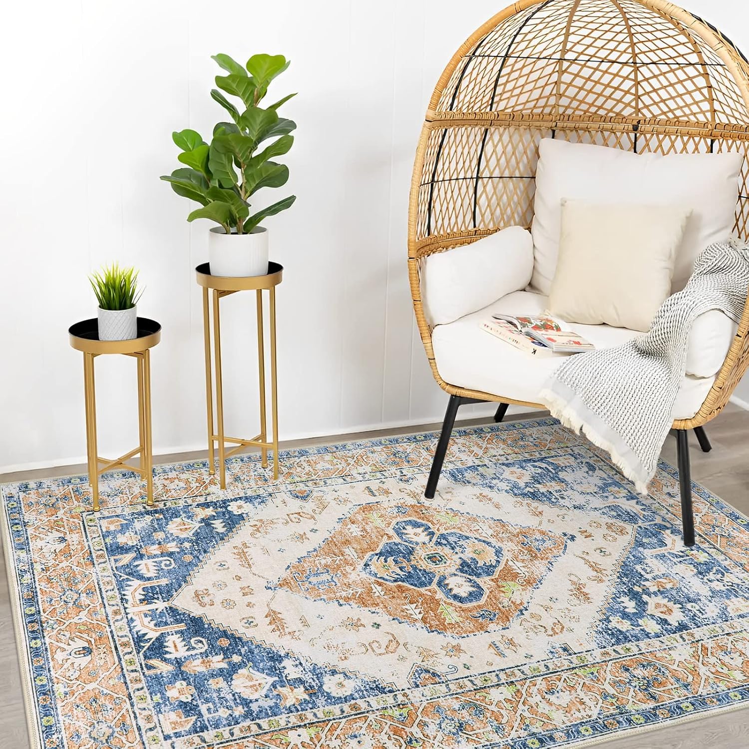 Lahome Boho Washable Living Room Rug 3x5 Throw Non-Slip Area Rug for Bedroom Lightweight Thin Rugs for Entryway Kitchen Vintage Distressed Print Aesthetic Capet for Office Bathroom Laundry Room