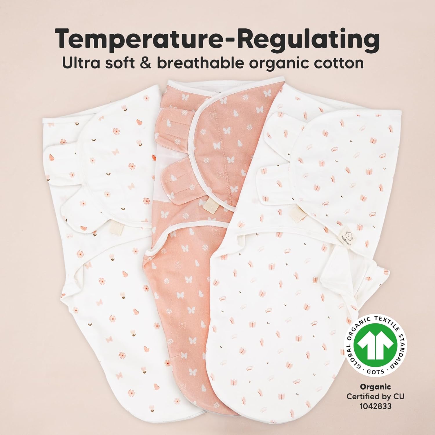 Baby Swaddle Sleep Sacks with Zipper - 3-Pack Swaddles for Newborns 0-3 Months, Infant, Baby Girls, Boys, Soft & Durable Newborn Sleep Sack, Easy Diaper Change Swaddling Blanket (Butterflies)