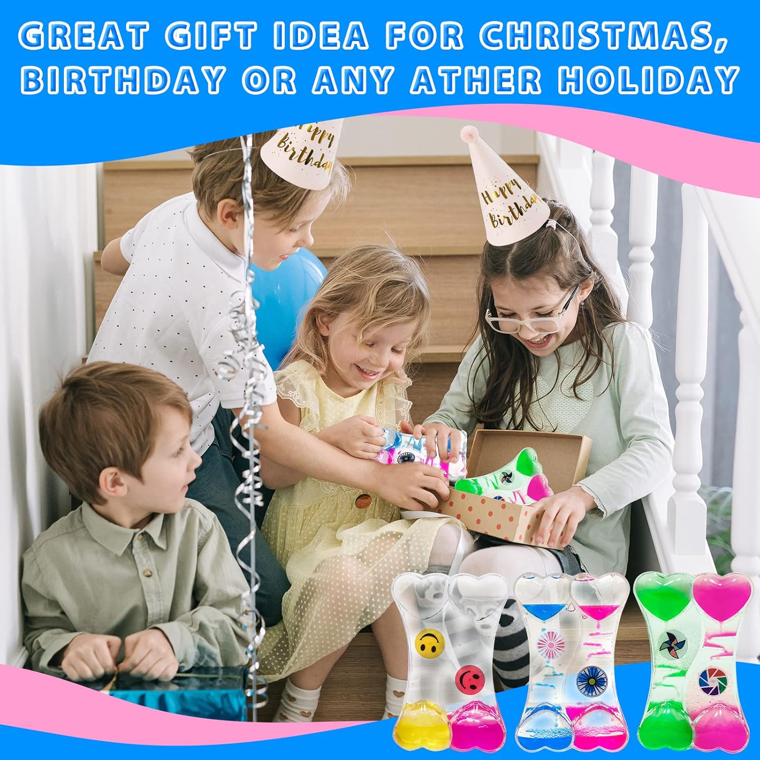 - 【Perect For Kids & Adults】-It is a liquid motion toys for babies, kids, and adults. Each liquid motion bubbler timer contains two colors inside. Lasts more than 2 Minutes! Then Flip Over and Restart. This cool sensory water toys is a great gift for Christmas, birthdays, or any other holidays.