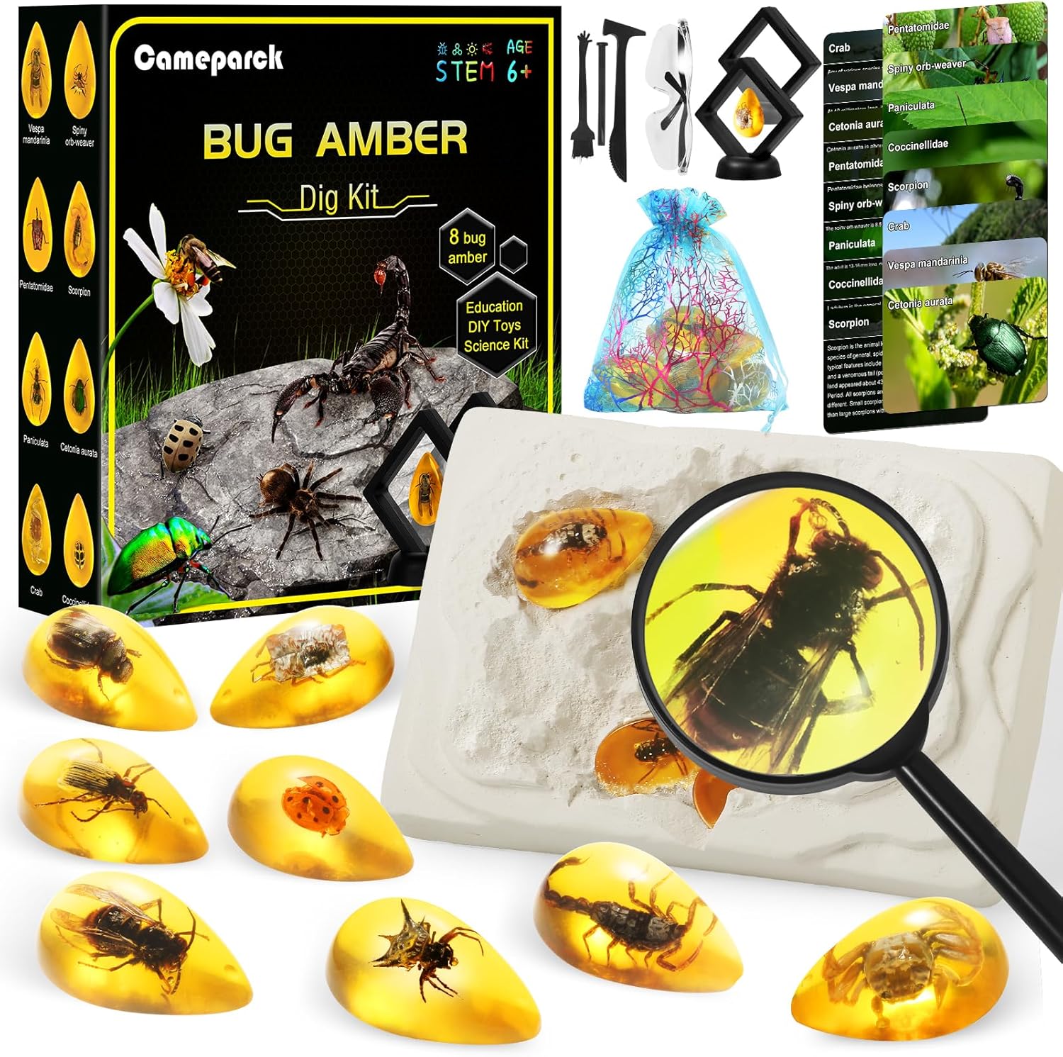 - Magic Amber Your Kids Will Love: Amber has high scientific, educational and collectible value. Let our Cameparck dig kit inspire your kid's love of geology, biology and amber insects. It's sure to become one of their favorite educational activities