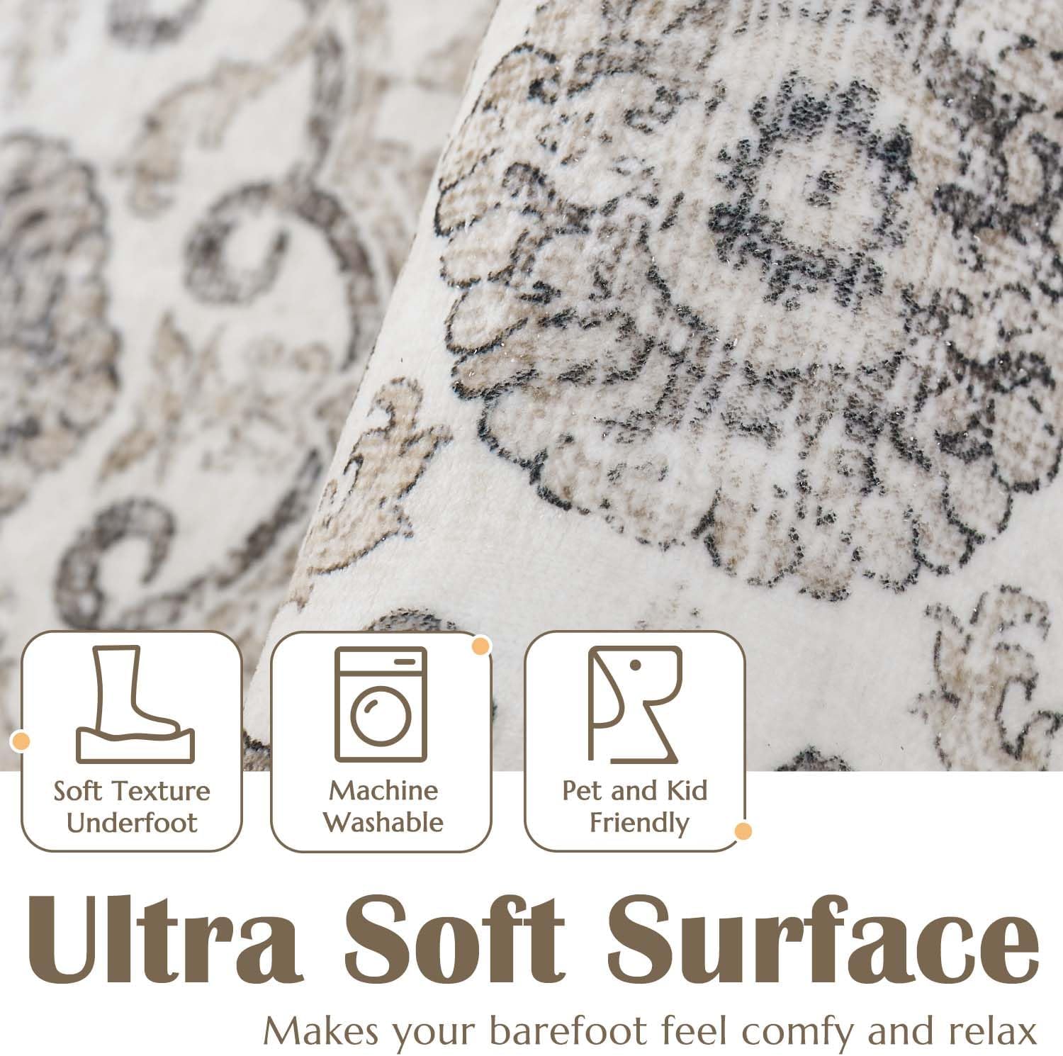 jinchan Floral Area Rugs 4x6 - Machine Washable Vintage Distressed Boho Design Throw Rug Stain Resistant Carpet Low Pile Ultra-Thin Non-Slip for Bedroom Living Room Dining Room Kitchen (4‘x6',Beige)