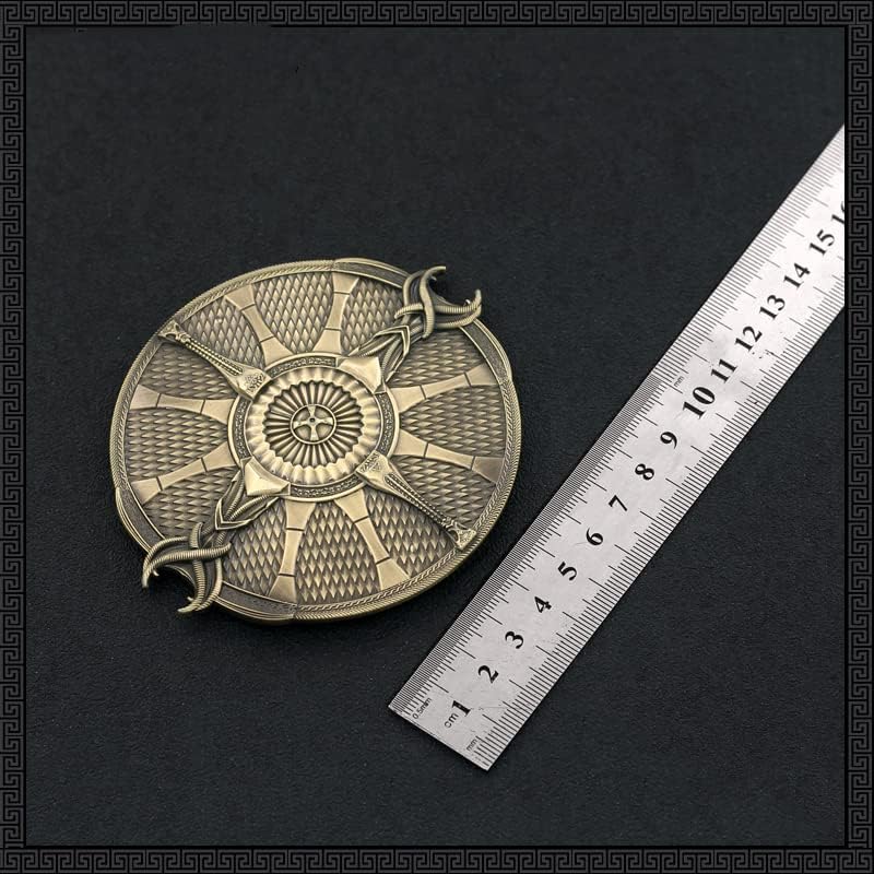 - [Size] 10cm /4''inches Metal design based on Game God of War Ragnarök Kratos' Guardian Shield; very fun to play as a fidget toy or set as decorations in rooms.