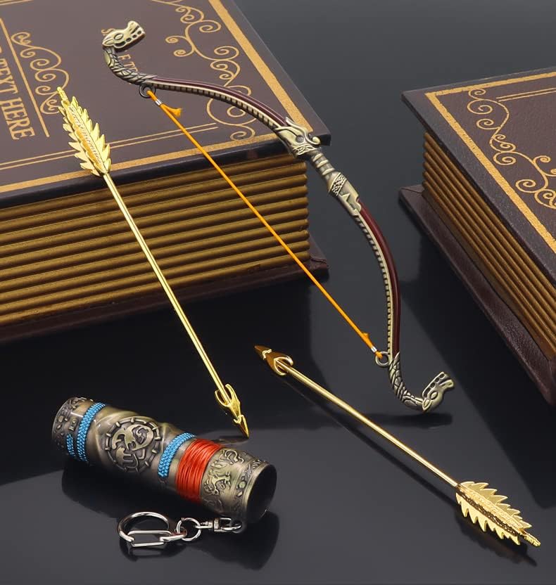 - [Collection & Gift] As a Surprising Gift for God of War fans or A necessary for Game Collection gift to God of War Players, as a home decoration, desk decoration,Shelf Decoration, Backpack Pendant. Also a very worthy collection God of War Ragnarök Atreus Talon Bow and Arrow in Quiver duplica, and able to use as Displaying decorations.