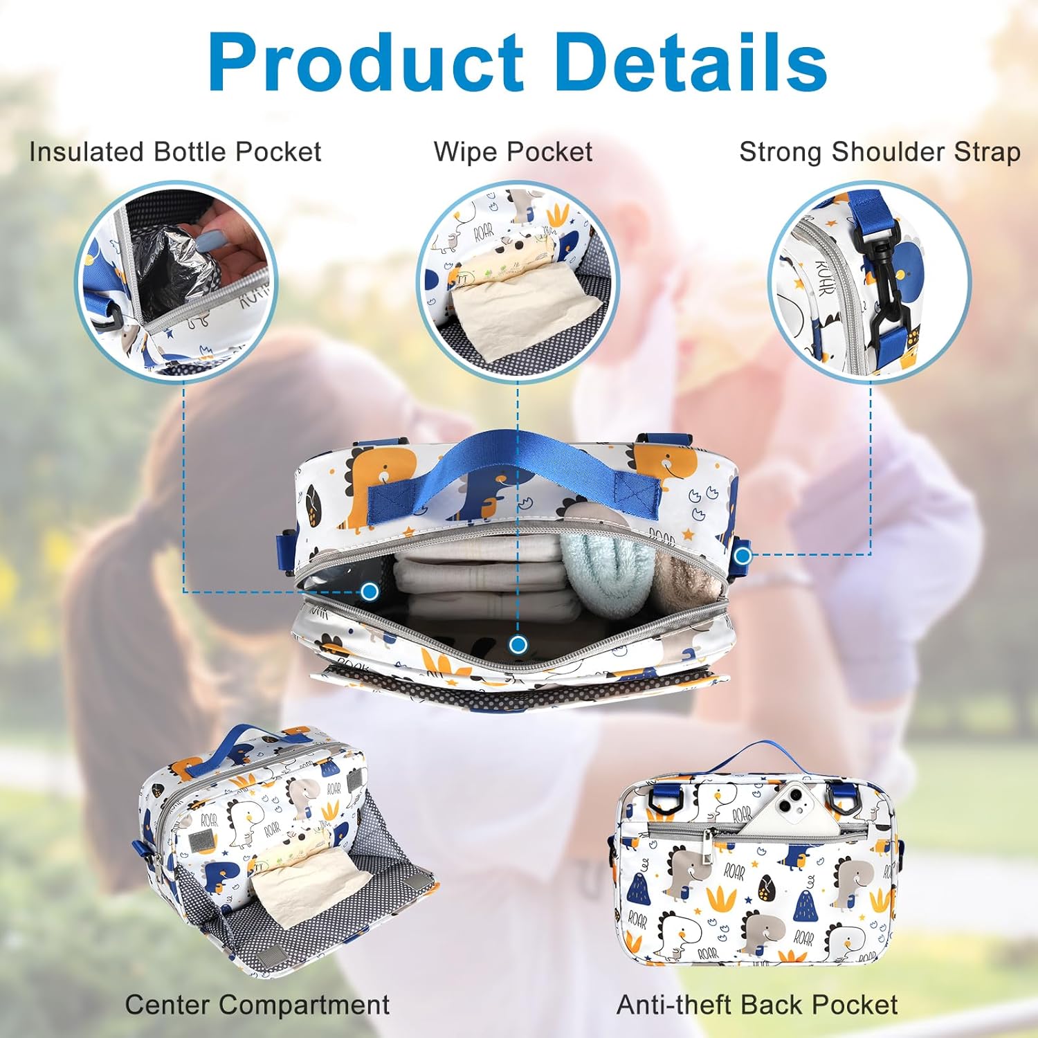 - Multi Structure: Designed with 1 insulated cup holder for baby bottle; Large pocket for storage baby diapers, wipes, toys etc. Convenient wipe opening for easy access of wet wipes ; The back pocket convenience for place cell phone, keys. wallet etc .