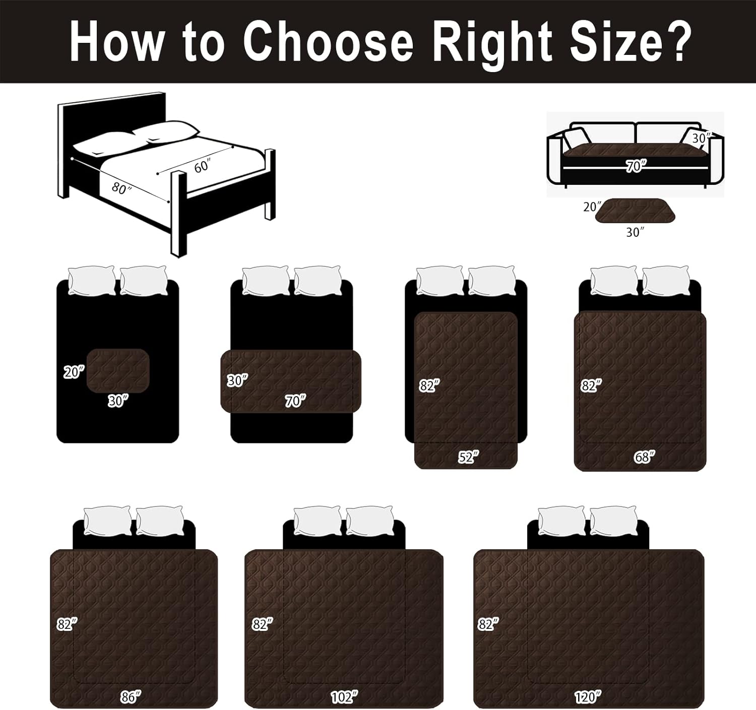 100% Waterproof Dog Bed Cover 102x82 in Reversible Reusable Camping Mat for Kids/Pet/Dog/Cat Washable Geometric Embroidery Blanket Patchwork Brown+Beige