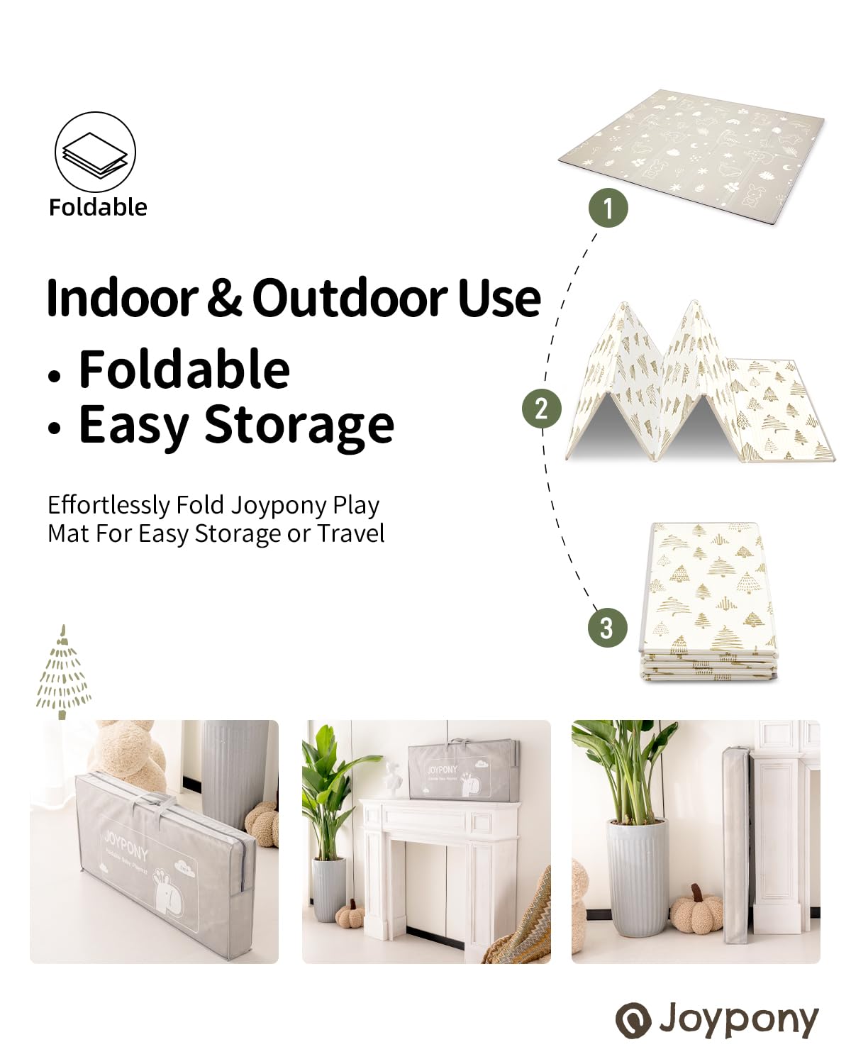 - [SAFETY & COMFORT - FOREMOST PROMISE] - Made from high-density XPE foam material, our baby play mat is BPA-free, non-toxic, and no chemical smell, ensuring a soft and safe play surface for infants and toddlers. Its cushioned design is perfect for protecting little ones from hard floors and providing extra support during tummy time. Joypony play mat is truly reliable, safe and and is ready to use right out of the box.
