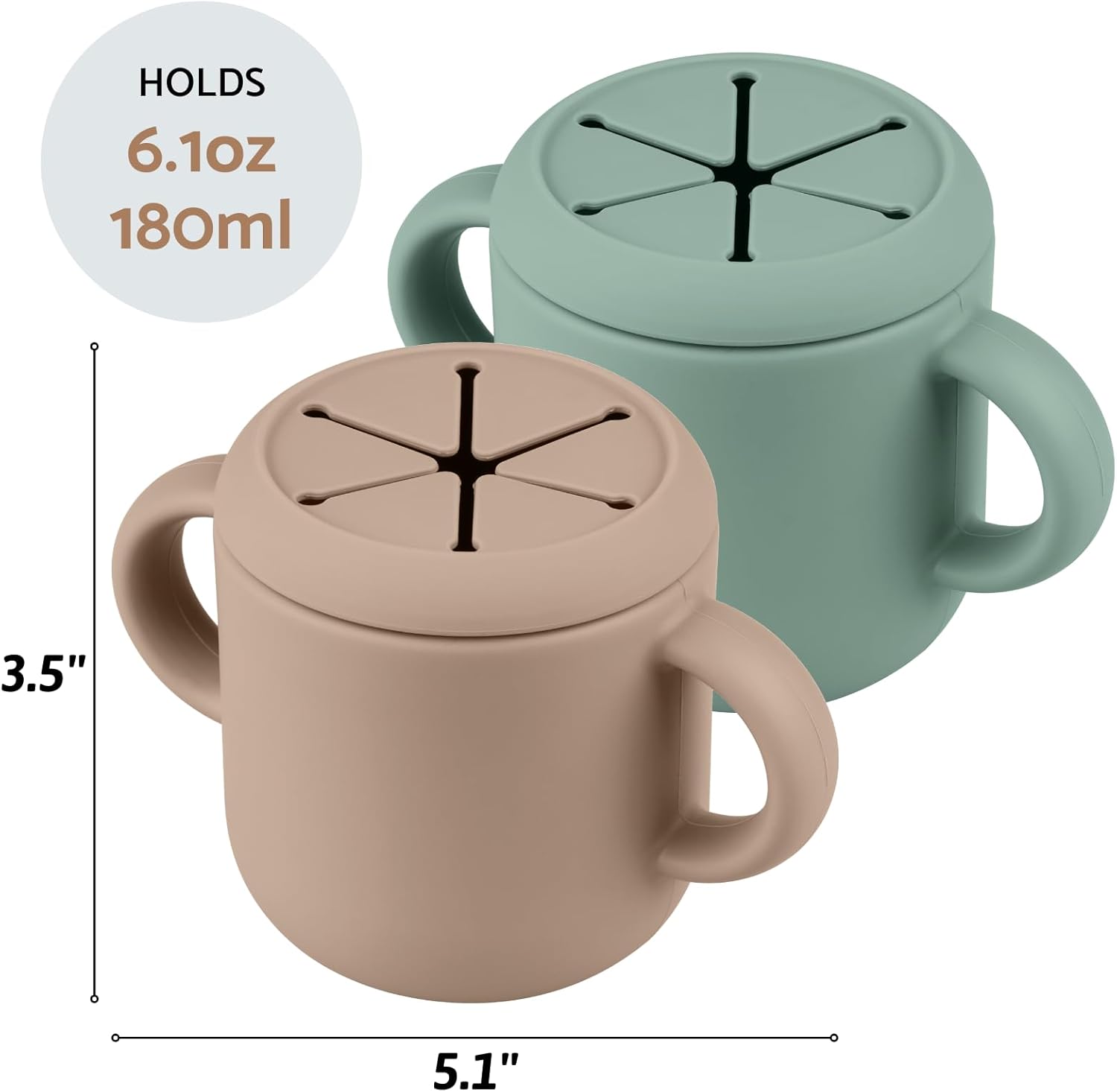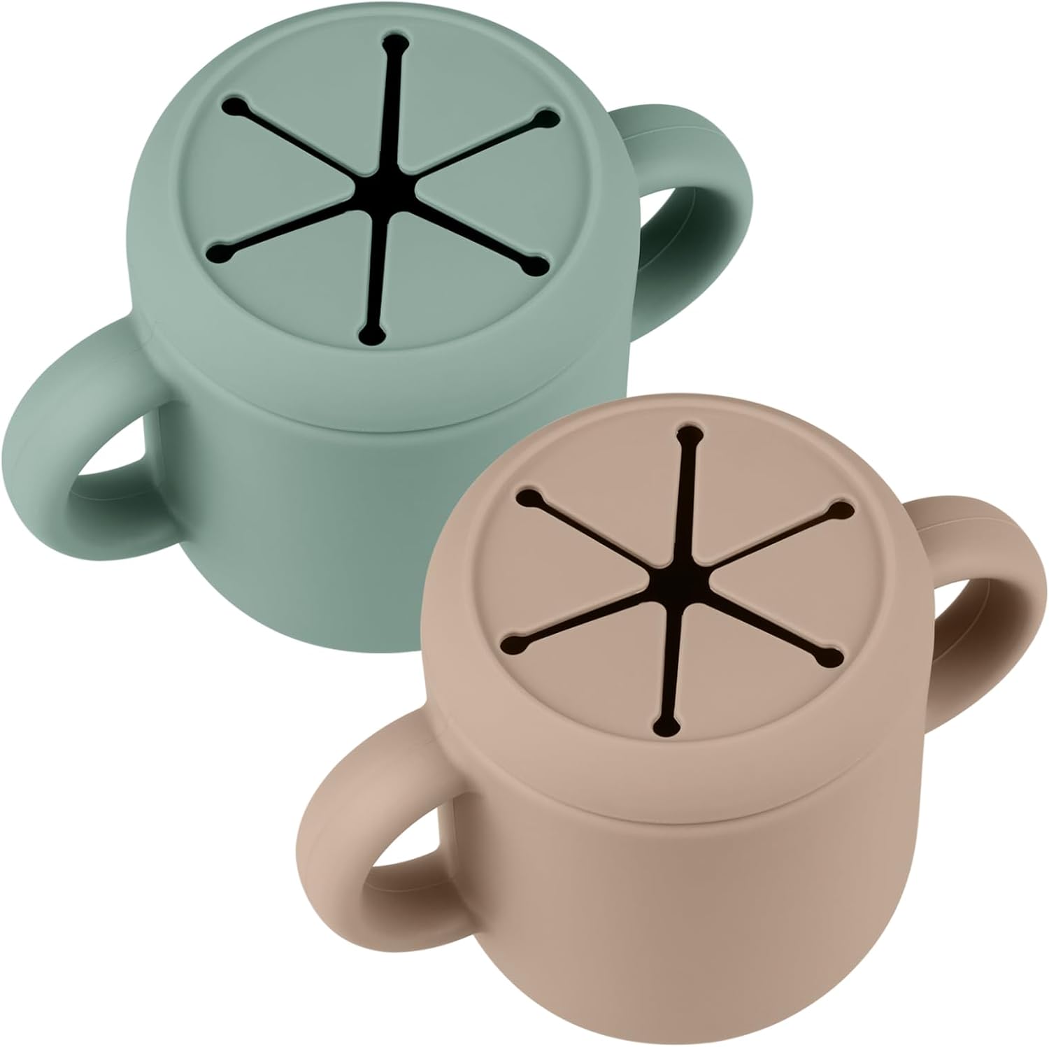 - Food Grade Material: Made from 100% food-grade silicone, these game-changing little containers keep snacks contained–especially helpful while on the go. Soft silicone flaps on the top allow toddlers to comfortably reach inside, while also preventing food from falling out. The two easy-grip handles are sized just right for tiny hands.
