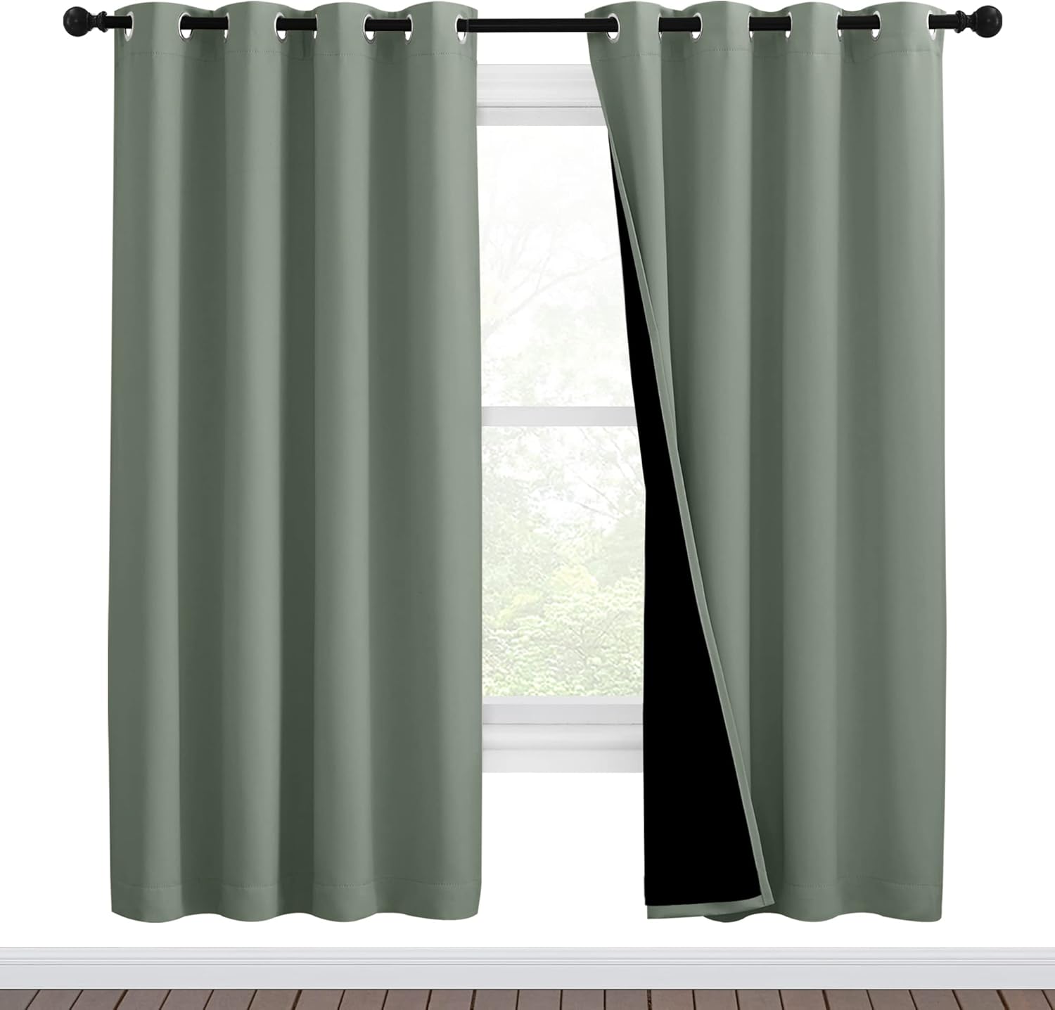 NICETOWN 100% Blackout Window Curtain Panels, Full Light Blocking Drapes with Black Liner for Nursery, 72-inch Drop Thermal Insulated Draperies (Greyish Green, 2 Pieces, 46-inch Wide Per Panel)