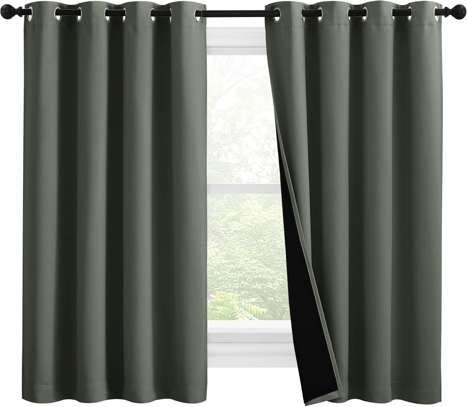 NICETOWN 100% Blackout Curtains 57 inches Long, Double-Deck Completely Blackout Window Treatment Thermal Insulated Lined Drapes for Small Window (Dark Mallard, 1 Pair, 55 inches Width Each Panel)