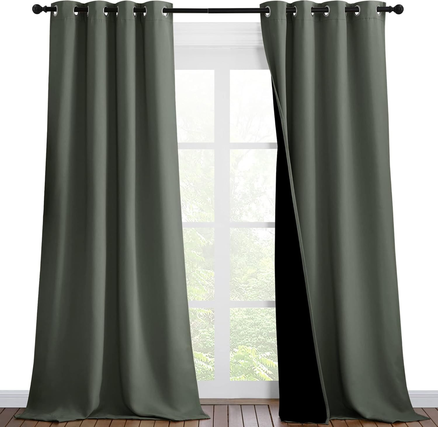 NICETOWN Dark Mallard Blackout Curtains 90 inches Long, Full Light Blocking Drapes with Black Liner for Nursery, Thermal Insulated Draperies for Hall, Villa (2 Pieces, 46" Wide per Panel)