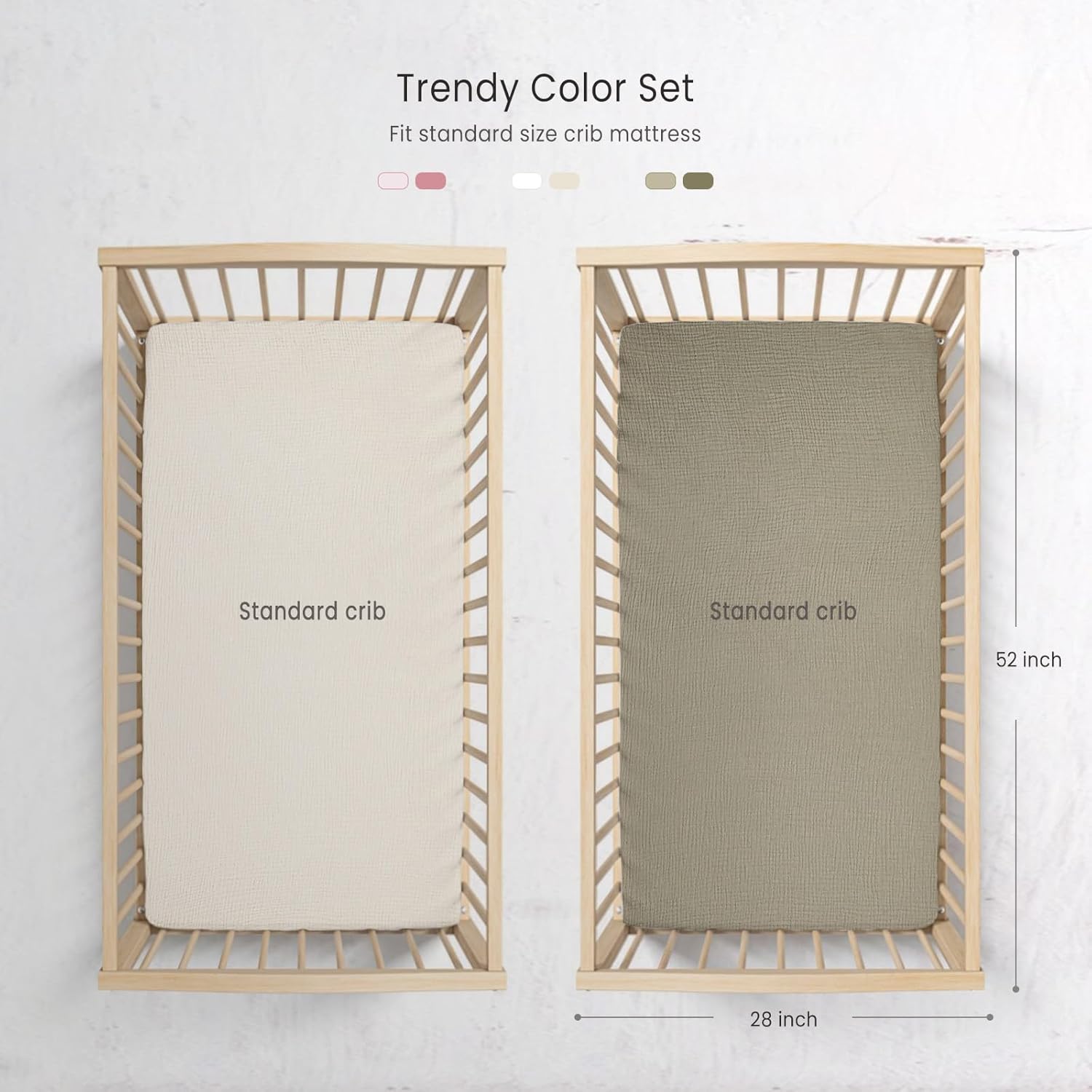 - MUSLIN COTTON - Our crib sheets are made of 100% muslin cotton.The soft and breathable material won't irritate baby's delicate skin and allows your baby to get comfort.