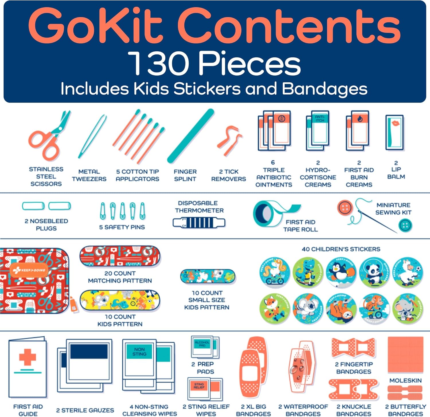 KeepGoing Travel First Aid Kit for Kids – 130 Pc. for Car, Home, Purse, Diaper Bag & Backpack with Latex-Free Bandages - Mini First Aid Kit Travel Size TSA-Approved