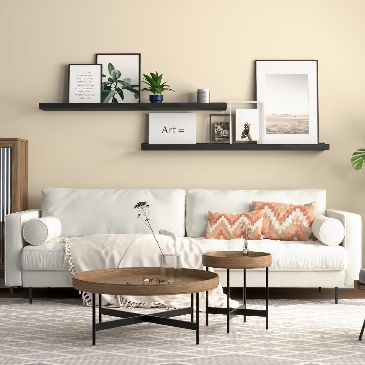 - Sleek and Minimalist Design - The clean lines and minimalist design of picture ledge shelves add a touch of elegance to any room decor. Whether it's your bedroom, bathroom, living room, or room corner, these wall shelves seamlessly blend with your existing home decor, creating a stylish and organized atmosphere.