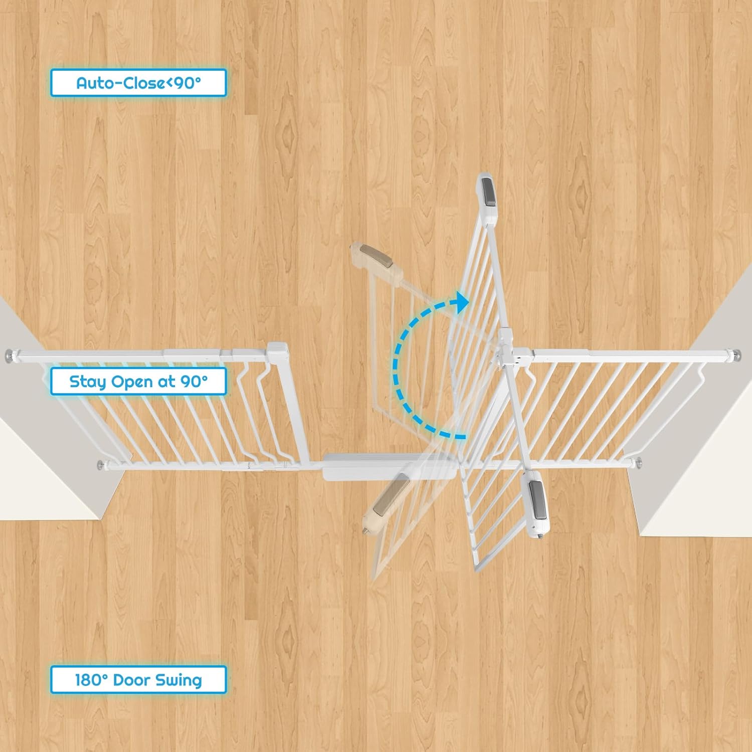 - Hassle-Free Installation: Pressure mounted tension baby gate with 4 pressured adjustment bolts can be easily and quickly installed within 10 minutes. No drilling or tools needed to protect your walls from damage. Note: Please do not remove the zip tie which is to fix the latch to the frame for easy installation until baby/child safety gate is completely assembled, and recommend to carefully read our assembly instructions & user manual before installing.