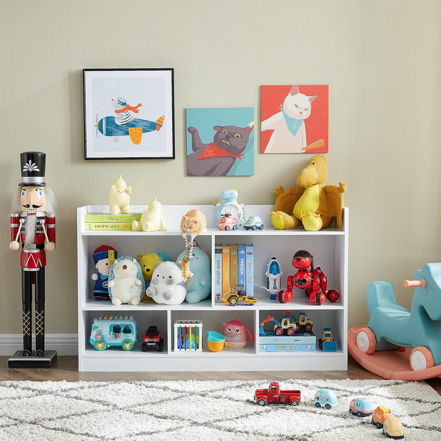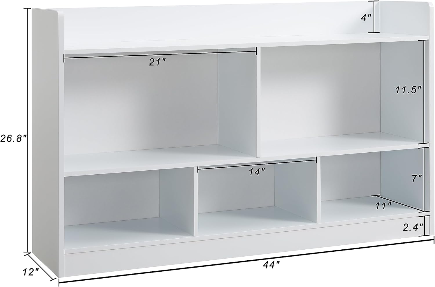 Kids Toy Storage Organizer, 5-Section Bookshelf for Organizing Books Toys, Wooden Storage Cabinet Daycare Furniture for School, Classroom Playroom, Nursery, Kindergarten (White)
