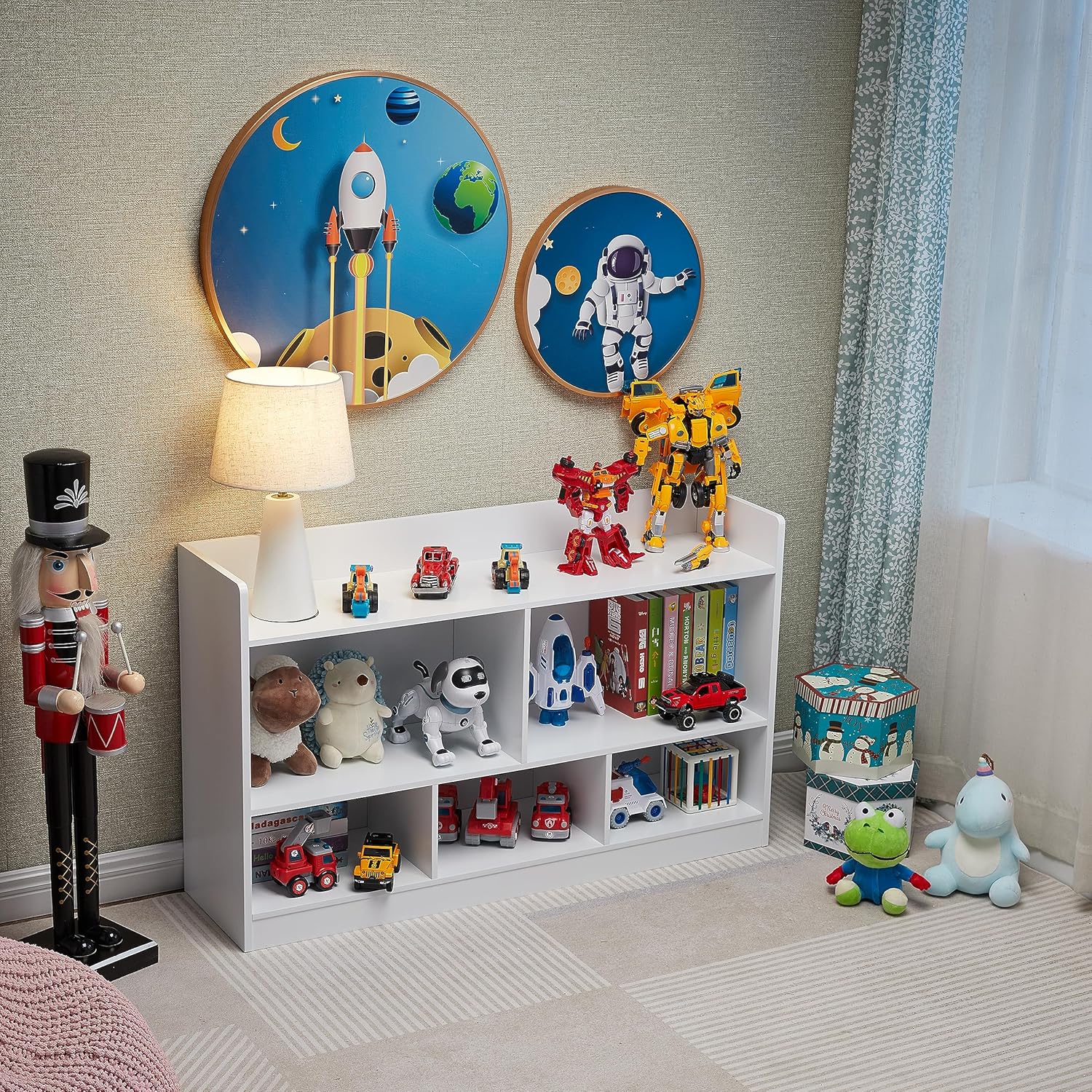 - 【Child-friendly Design for Safety】- Our bookcase and toy storage cabinet feature a child-friendly design for maximum safety. The smooth rounded edges of the bookcase prevent any potential splinters that could harm your little one. The cabinet bottom is raised up by 2.4” to prevent the books or toys in the lower shelf from being smeared. At a height of 26.8", the cabinet is perfectly sized for children, encouraging them to develop good organizational habits from a young age.