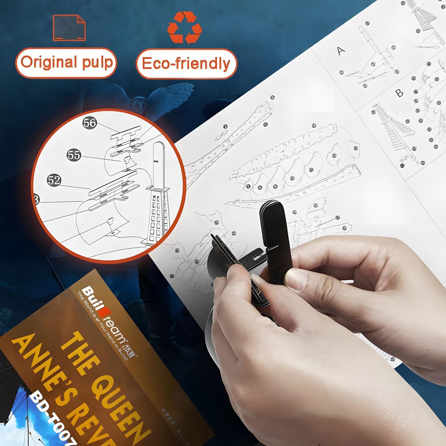 - 【Easy to Assemble】The Queen Anne's Avenger 3D Puzzle is made of 111 pcs EPS foam boards. This material is a selected eco-friendly composite that is more authentic and lighter than plastic. You just need to assemble it according to the detailed and simple instruction manual. Assembled dimensions are 19.9*7.5*17 in / 50.4*19*43 cm.