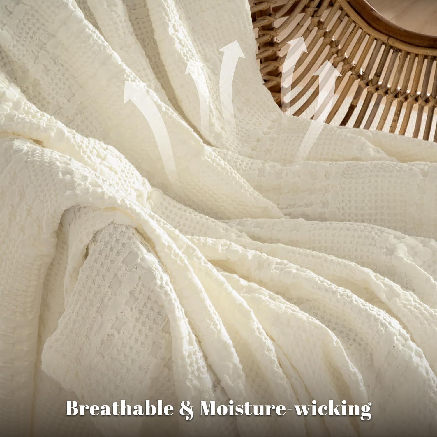 PHF 100% Cotton Waffle Weave Throw Blanket, Soft Lightweight Breathable Cozy Summer Throws for Couch Bed Sofa, Luxury Aesthetic Woven Blanket for Home Decor & Office, 50"x60", Cannoli Cream
