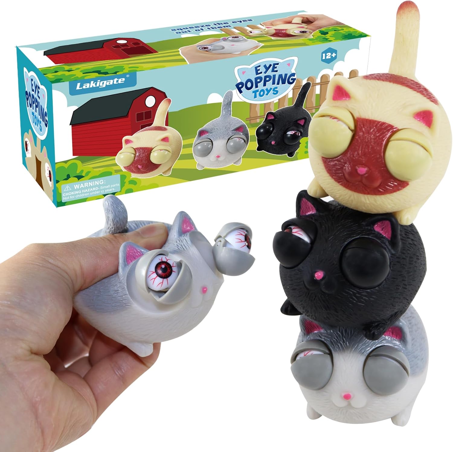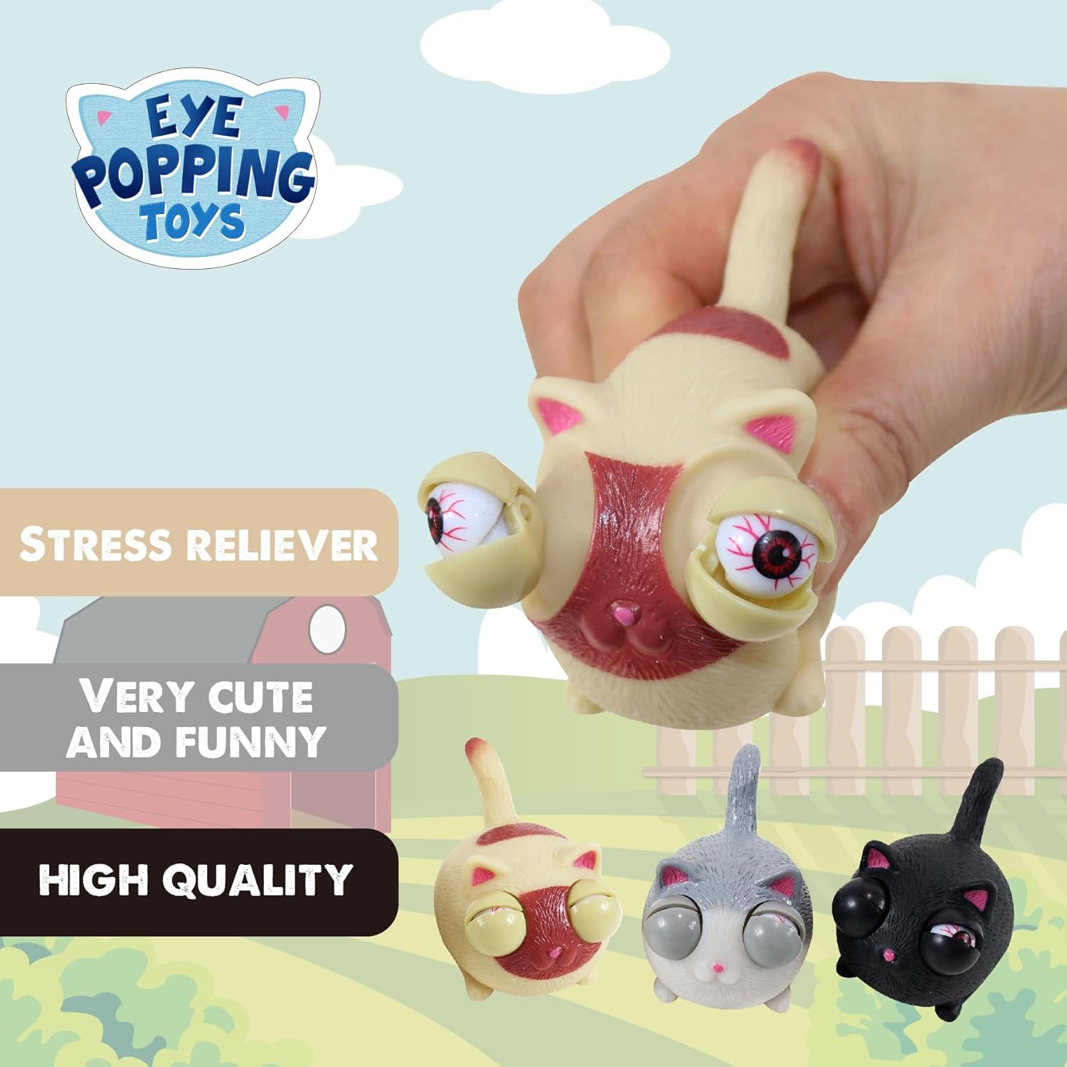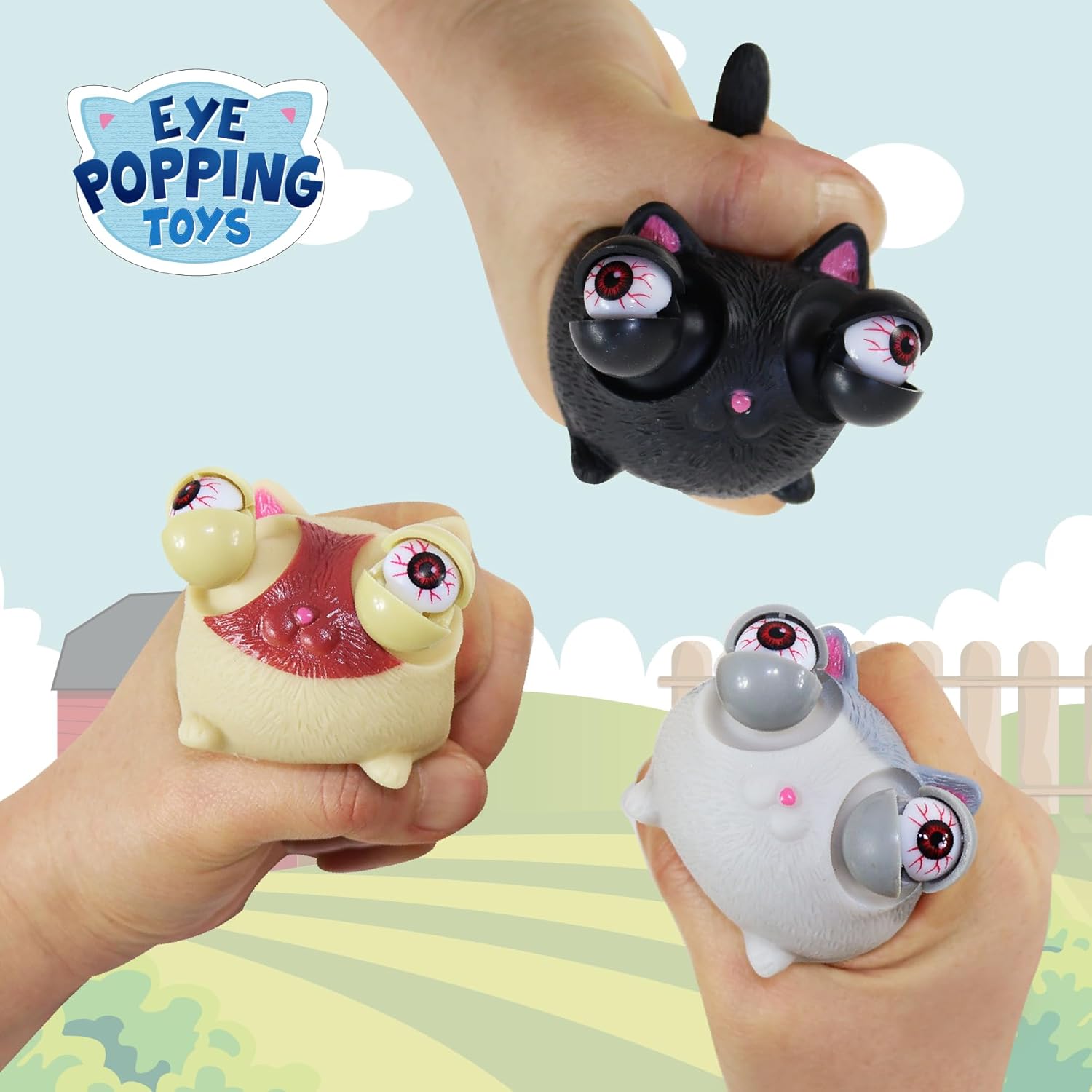 Fidget Toys,Eye Popping Squishy Toys,3 Pack,Cat Fidget Toys,Squishies for Autism, ADHD and Quitting Bad Habits,Non-Toxic