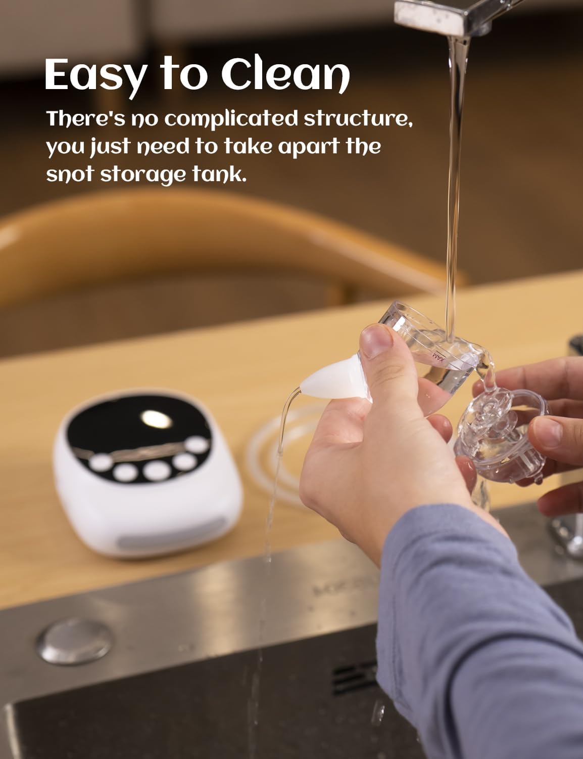- 【Hygienic, Hassle-Free Cleaning System】Built for busy parents, the nasal aspirato a fully detachable, transparent mucus chamber and tubing that can be quickly rinsed or sanitized.Ensuring easy maintenance and long-term hygiene. For added convenience, it’s dishwasher-safe, ensuring a hygienic and stress-free experience every time.