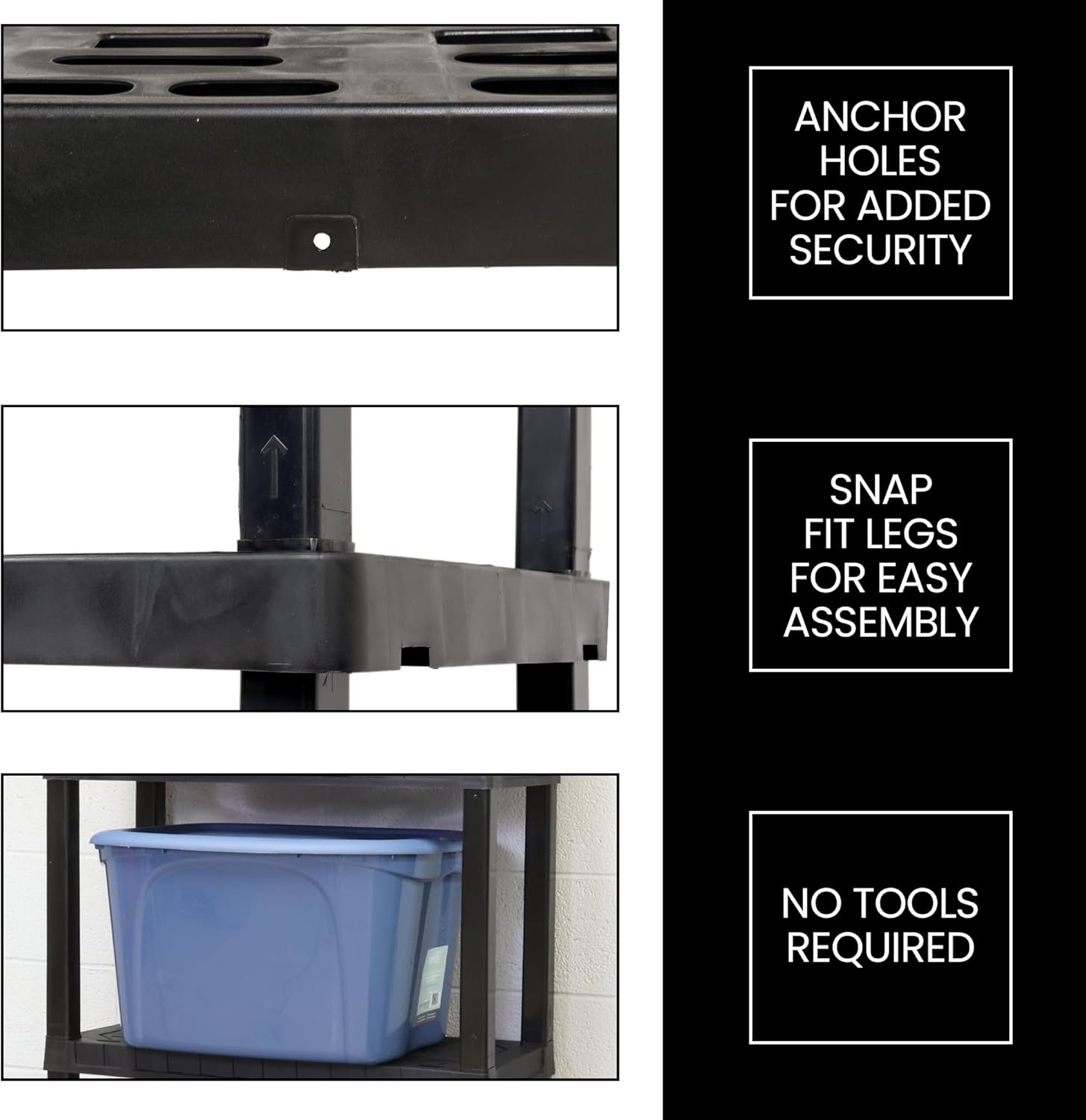 - DURABLE RECYCLED PLASTIC CONSTRUCTION : Built to last, our heavy-duty molded plastic resin shelves will not rust, dent, stain, or peel. Ventilation holes let air flow freely around your belongings, keeping them fresh and dry. This durable construction ensures long-lasting use and reliability, making it suitable for various environments, including damp areas, ensuring your items stay protected.