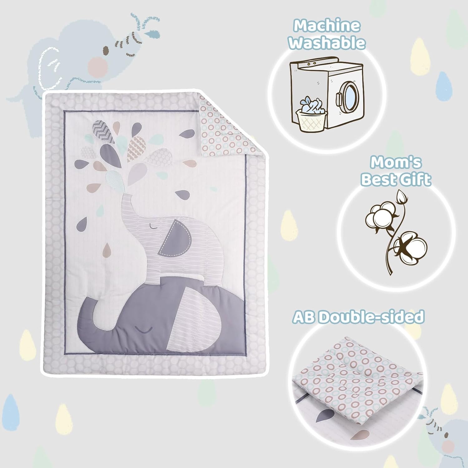 - Perfect Gift: This 3 piece crib bedding set elephant makes the perfect gift for babies shower for your baby, new mom, relatives, friends or new parents