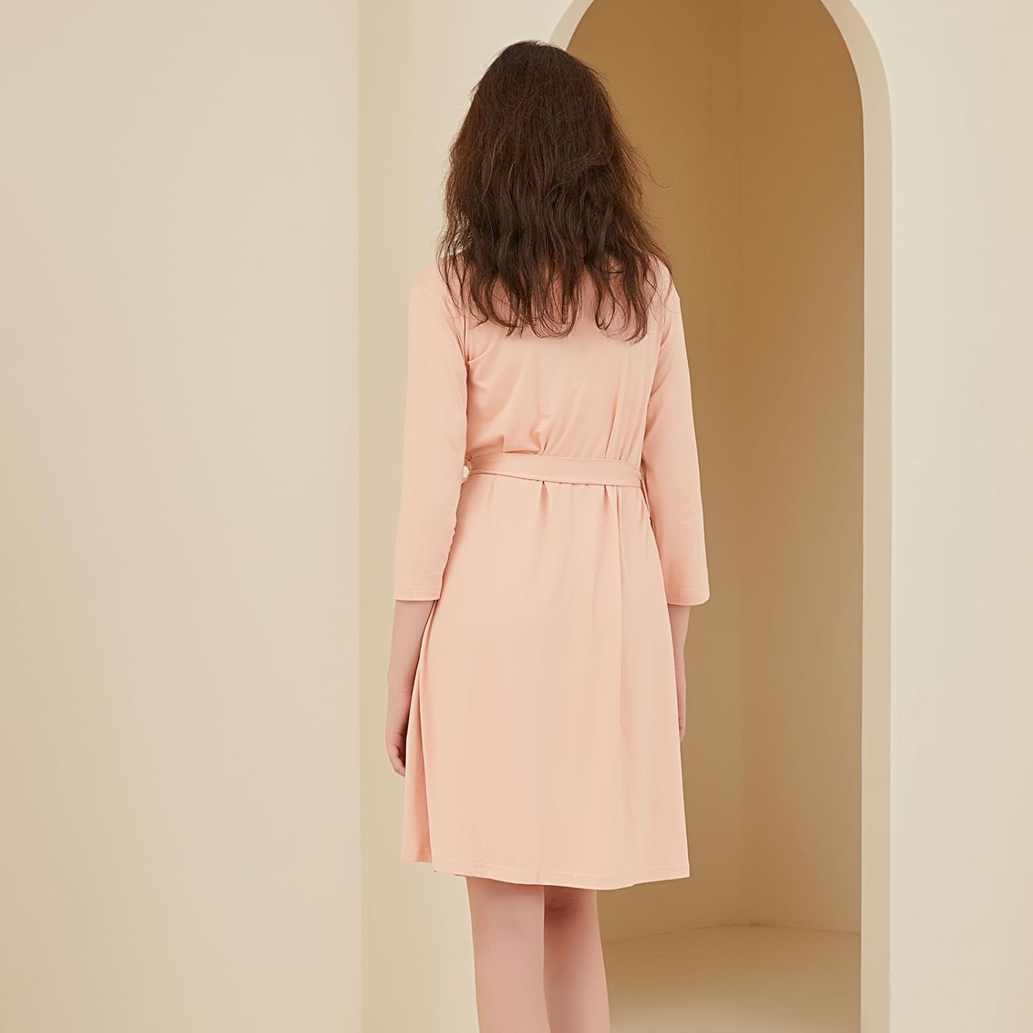 Galabloomer Maternity Robe and Baby Receiving Blanket, Matching Mommy Labor Delivery Robe and Swaddle Set (s, pink sand)