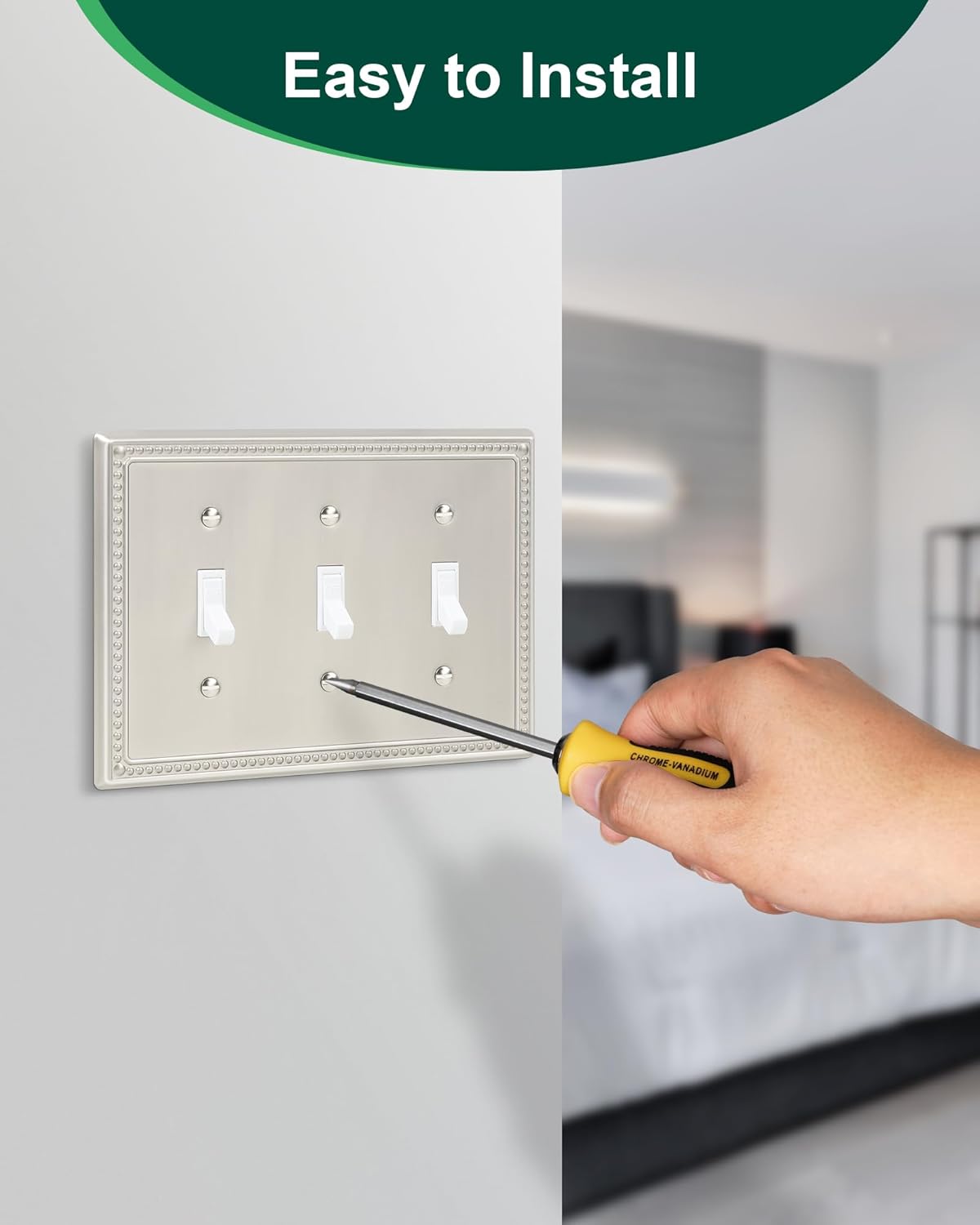 - Durable Metal - Crafted from thick and sturdy metal, this triple light switch cover plate ensures long-lasting durability and sturdiness. Resistant to tarnishing and corrosion, not easy to break. It will maintain its elegant appearance for years to come.