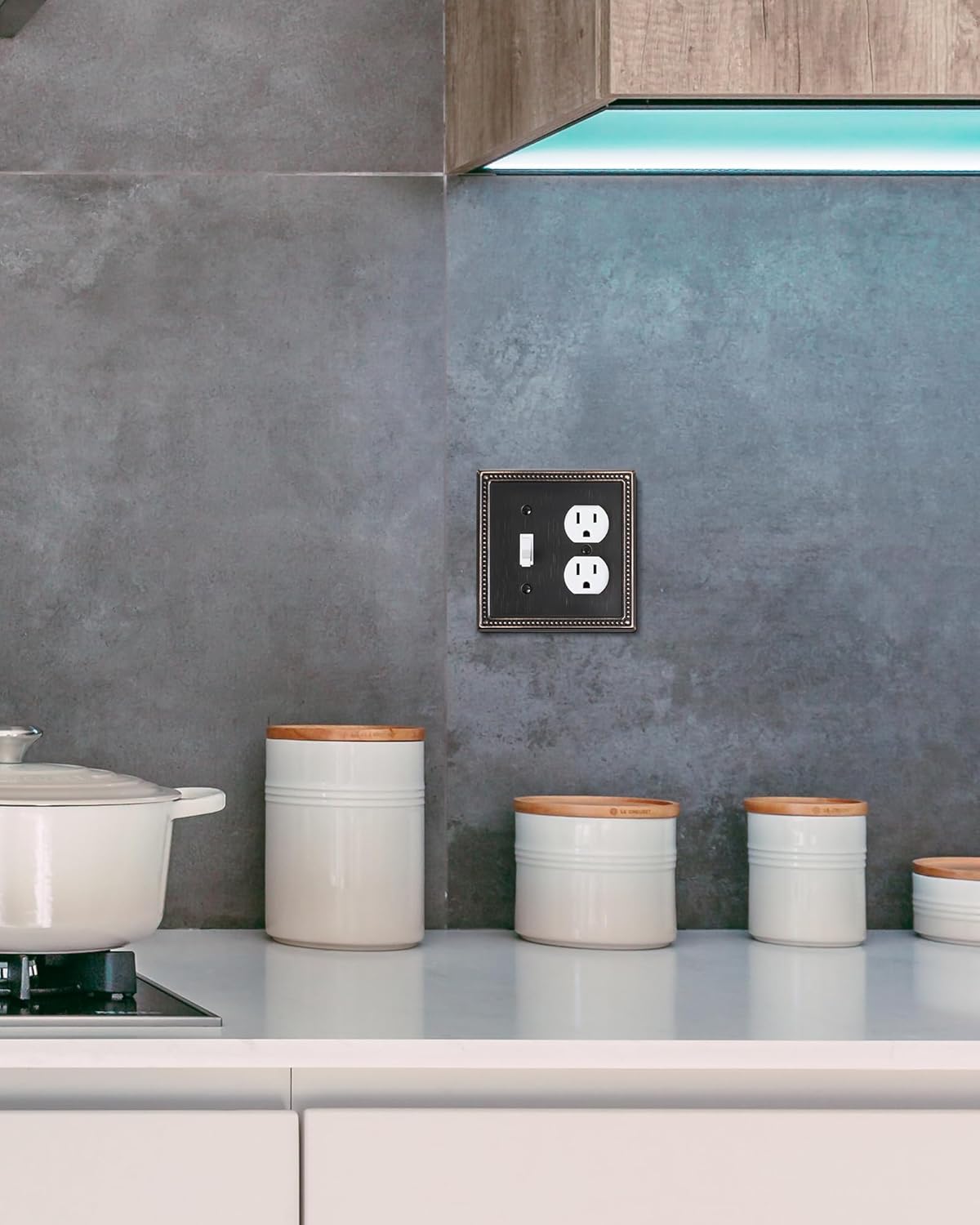 - Styling With Aged Bronze - The switch plates and outlet covers features an exquisite aged bronzed finish with a traditionally styled beaded border. Offering a functional yet elegant enhancement to your home decor. Stylish yet retro bronze wallplate effortlessly blends practicality with a refined decorative accent and sophisticated charm.