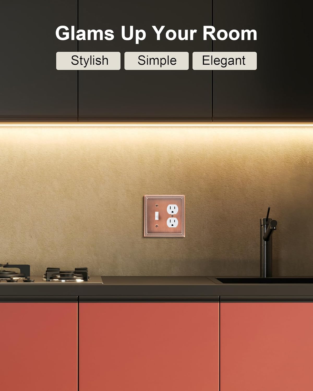 - Versatile & Durable - Constructed from thick and sturdy metal, the switch plates and outlet covers ensure long-lasting durability and sturdiness. It is resistant to high-impact, tarnishing, and corrosion, making it not easy to break. Rest assured that this Combo Toggle/Duplex switch plate covers will remain a stunning addition to your home for years to come.