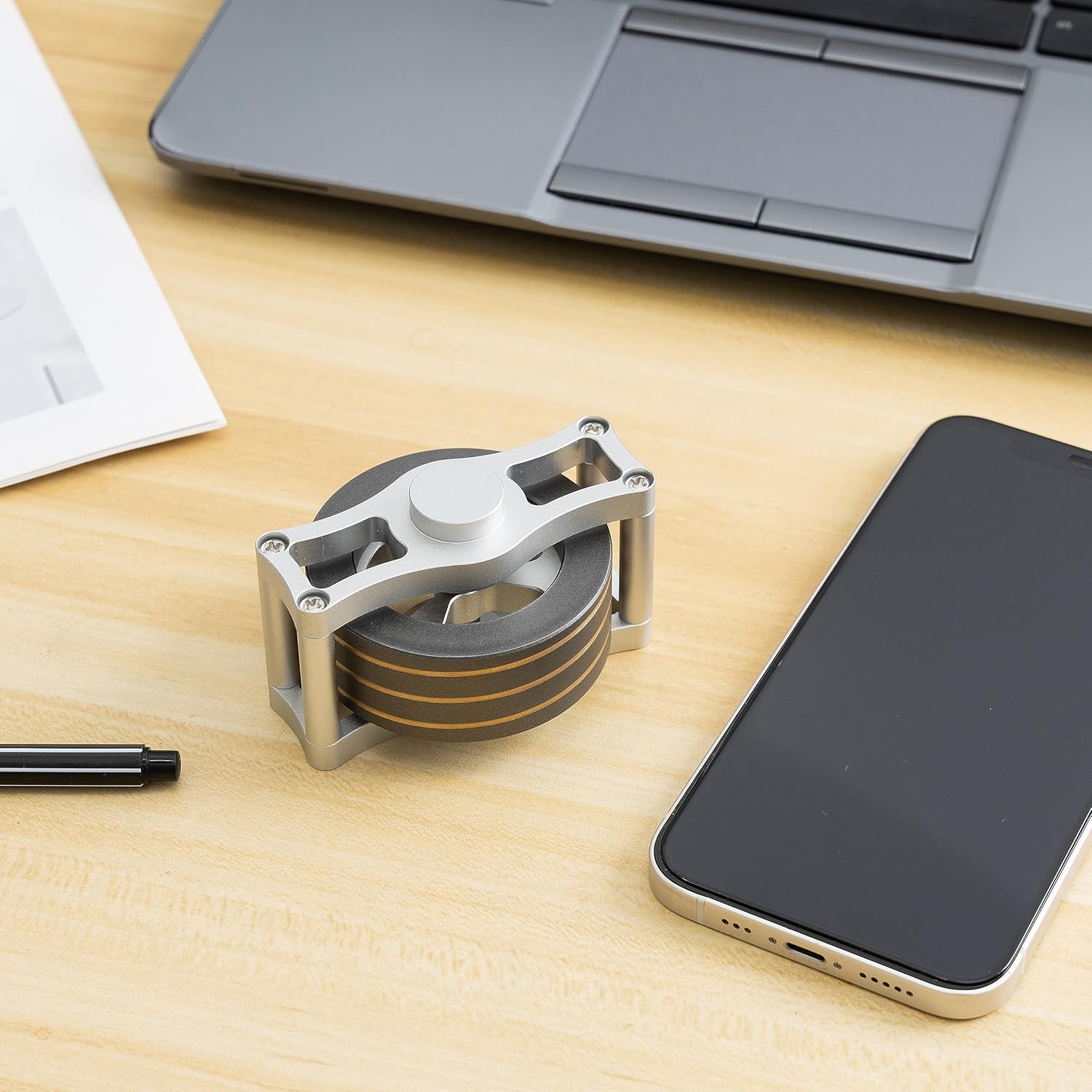 - 【EXQUISITE BRASS KINETIC SPINNER】Crafted through CNC machining with a copper rotor and aluminum stand. This mesmerizing fidget spinner boasts an engraved spiral pattern, creating a 360° optical illusion effect when spinning.