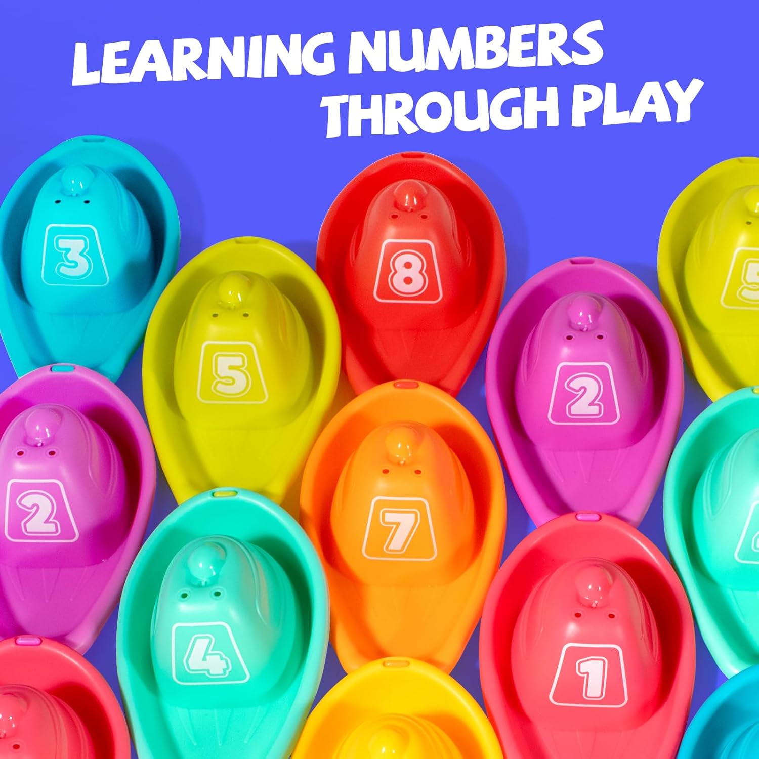- Come with 12 pcs no hole bath toys, 8 pcs stackable toy boat (which also can be linked together as a boat train)