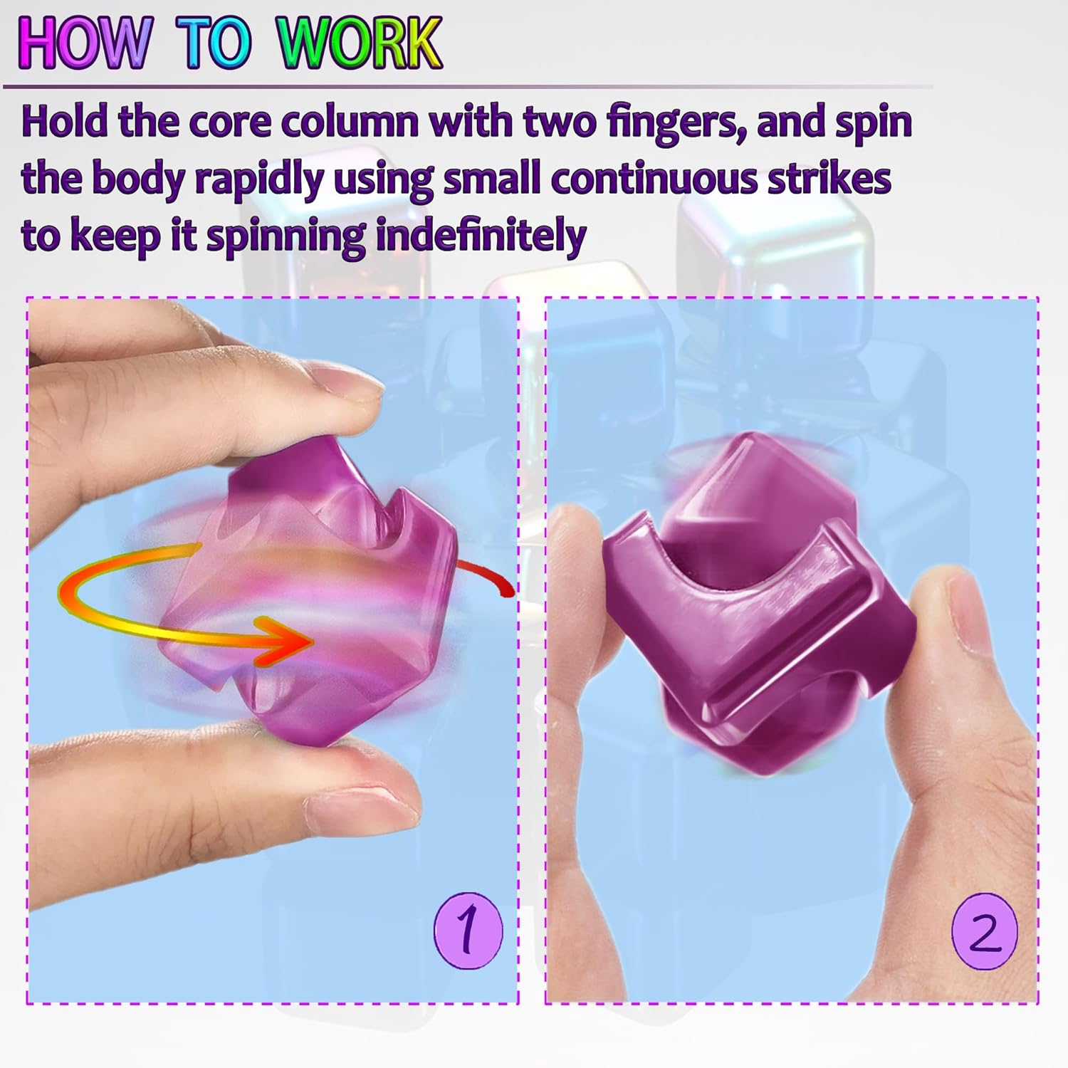 - FIDGET SPINNER CUBE: the Dr.Kbder Cube adopts stainless steel bearing, SLA technology and laser industrial forming technology. 3 minute average spins without loud noise.