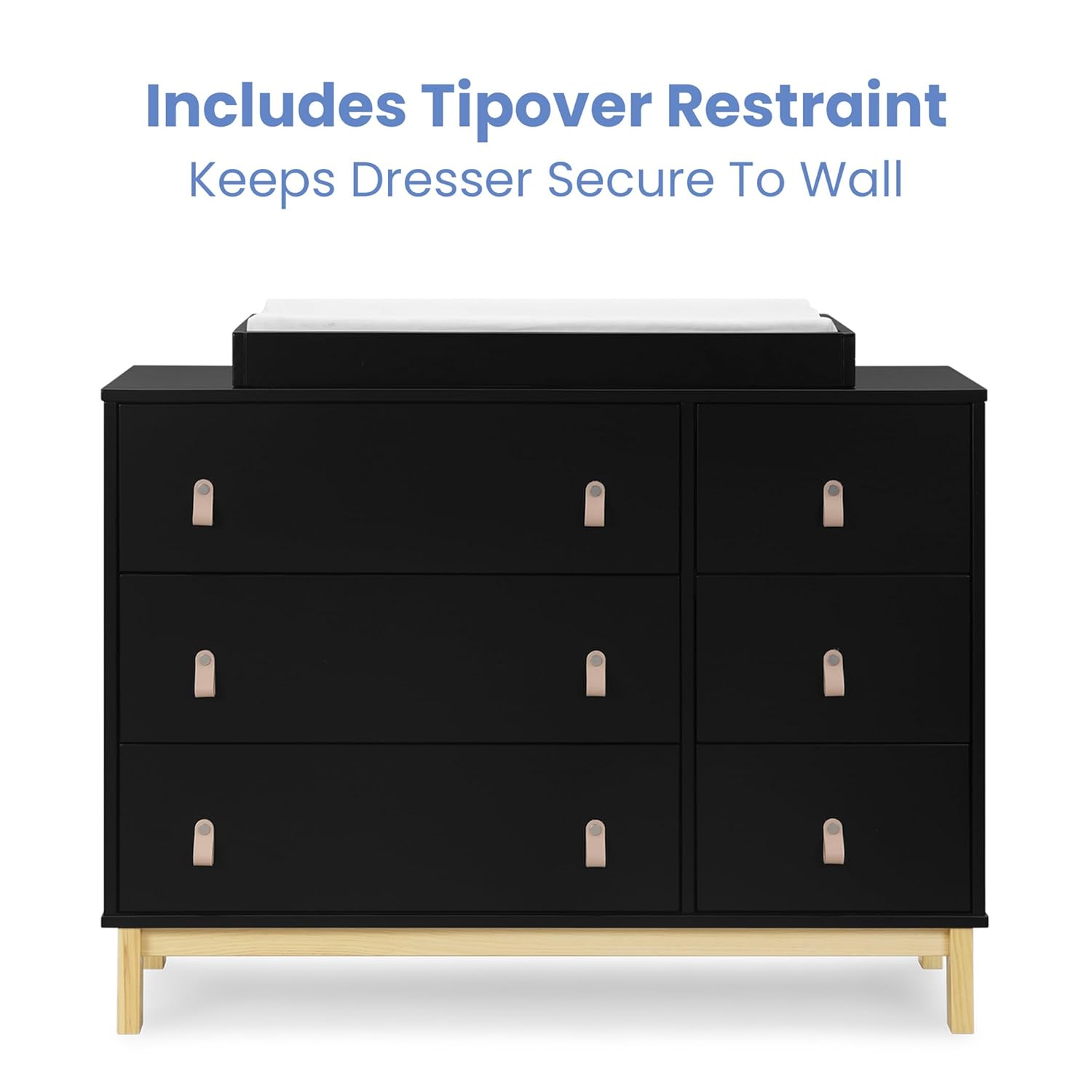 - VERSATILE STORAGE: This dresser features 6 drawers for plenty of storage space | Features leather drawer pulls with decorative metal fastener | Dresser includes tipover restraint for you to securely attach to your wall