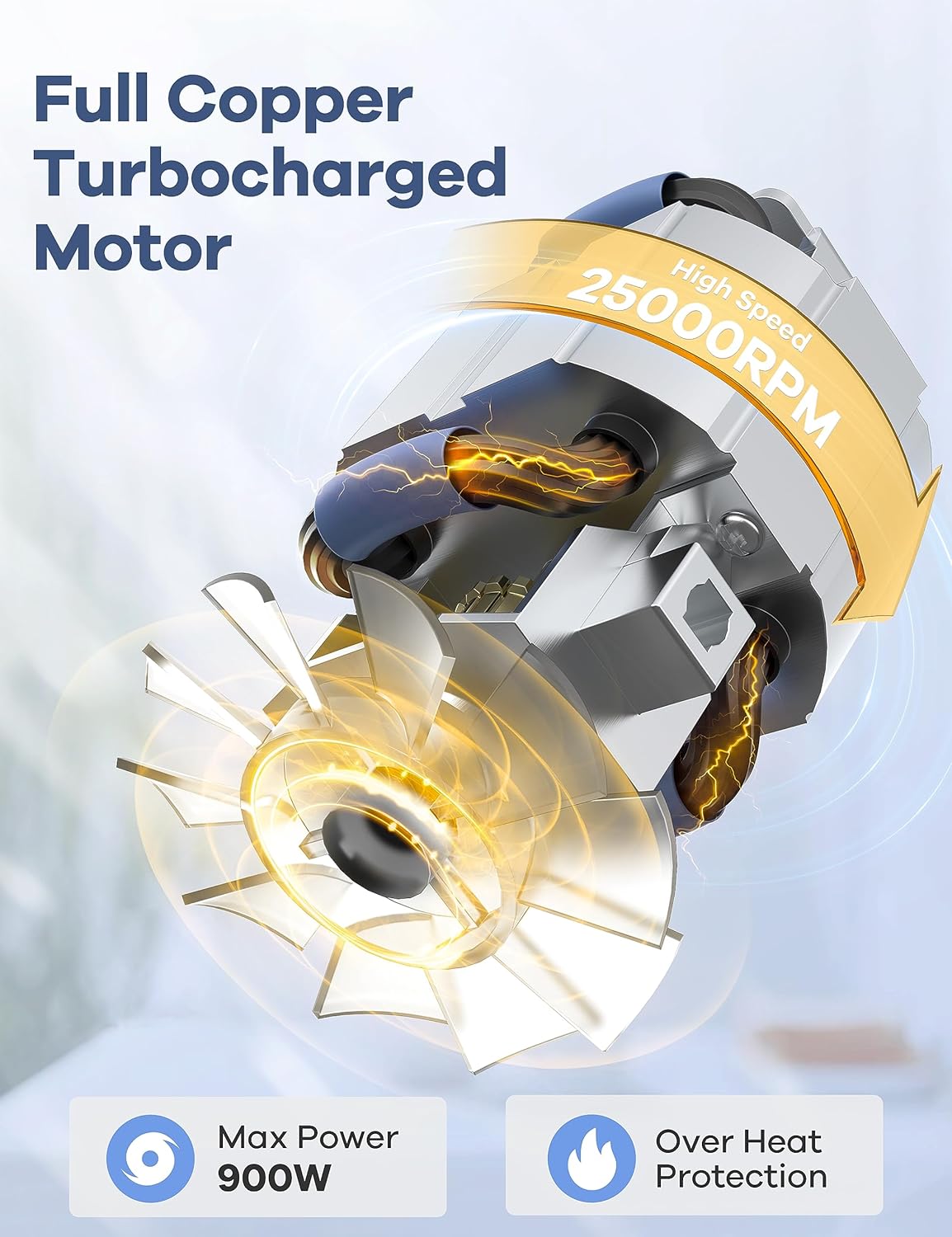 - 【Powerful Smoothie Blender】Peak Power 900W Smoothie Blender for Shakes with upgraded full copper turbocharged motor pulse technology, 25000RPW High Speed, faster and stronger, but just as simple to use. Load it up with dense whole foods like nuts, seeds, hard fruits, then push, twist and blend your way to a healthier lifestyle.