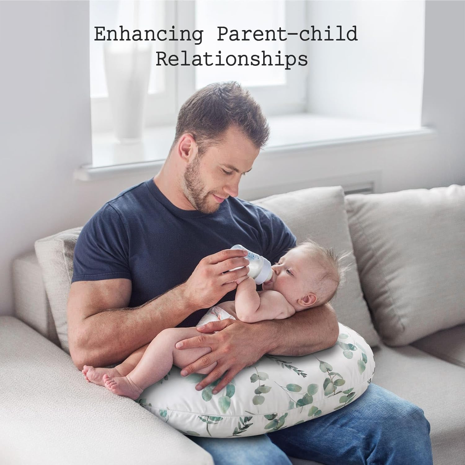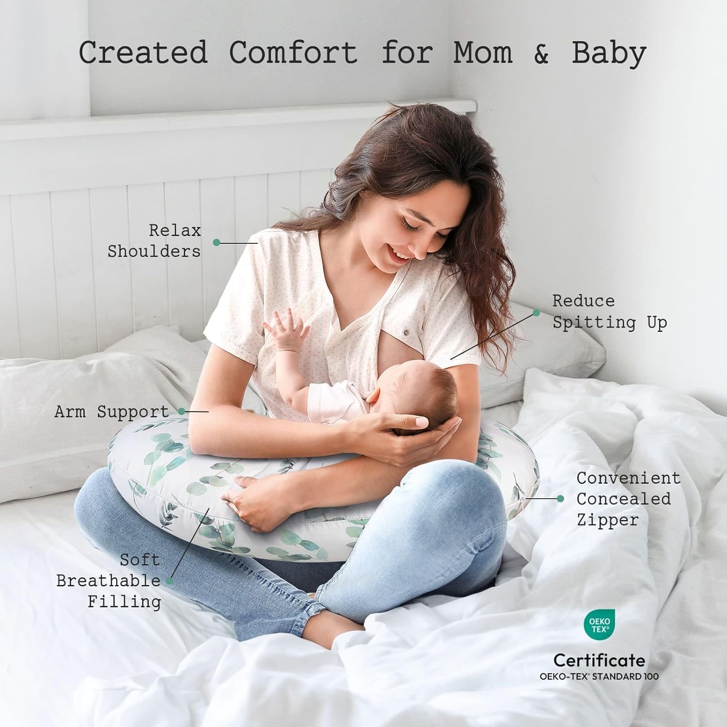 Little Grape Land Nursing Pillow for Infants, Breastfeeding Pillows, Baby Support Pillow for Nursing, Bottle Feeding, Tummy Time with Machine Washable Cover & Breathable Filling (Green Leaves)