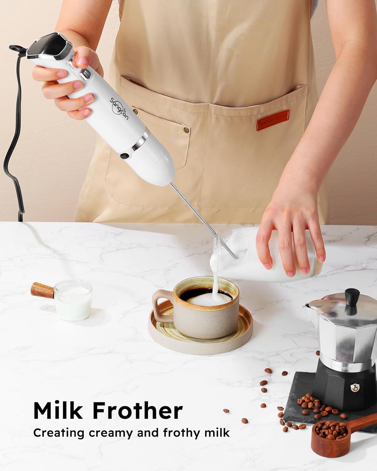 - 【3-in-1 Hand Blender】Our multifunctional hand blenders immersion comes with three essential attachments: a blending arm, a whisk, and a frother. From crafting delicious beverages to whipping up savory sauces, whether you need a milk frother, electric whisk, electric mixer, or drink mixer, this is the ultimate kitchen companion