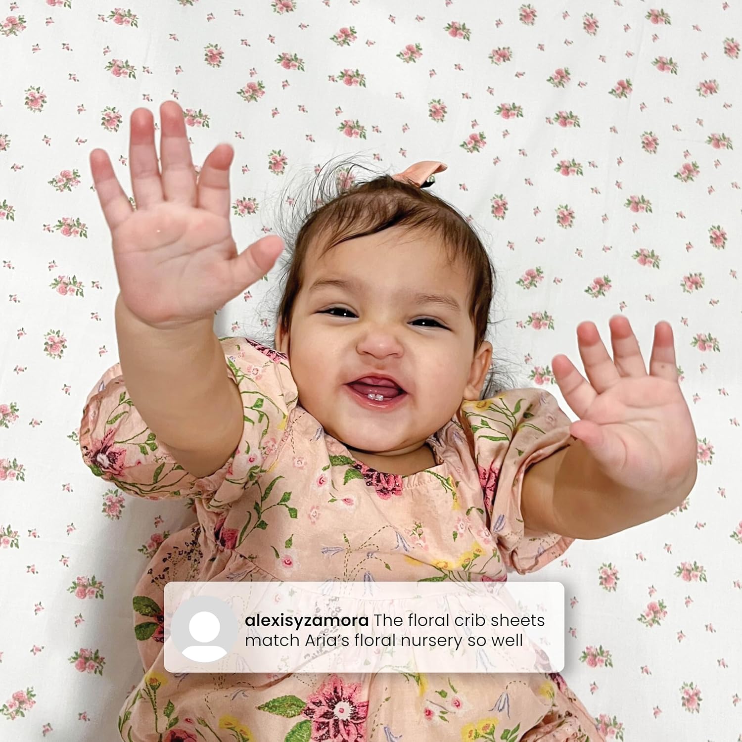 Delta Children Fitted Crib Sheets for Girls and Boys - Crib Sheet for Standard Crib and Toddler Mattresses - 28x52 Inch (Pack of 2), Pink Floral