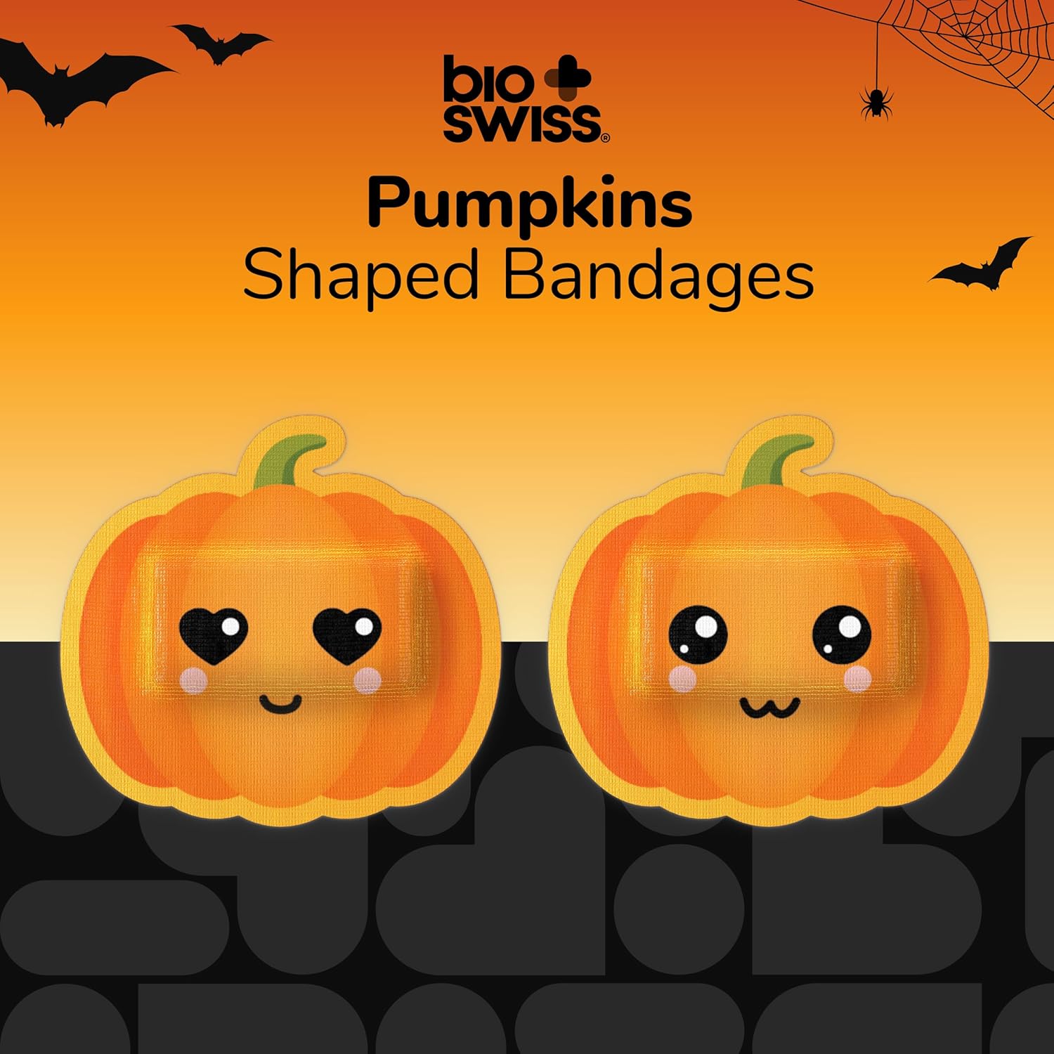 BioSwiss Bandages, Halloween Pumpkin Shaped Self Adhesive Bandage, Latex Free Sterile Wound Care, Fun First Aid Kit Supplies for Kids, 24 Count
