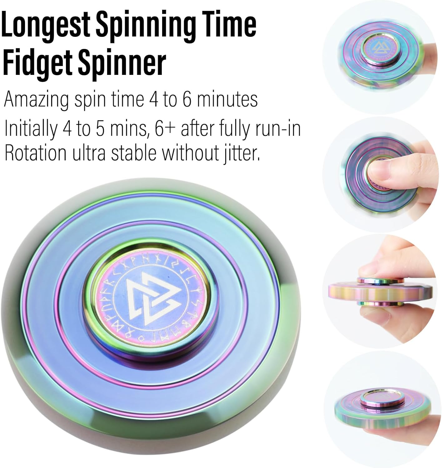 FREELOVE Metal Fidget Spinner, Viking Pirate Haptic Gyro, Heavy Stainless Steel Hand Spinning, Small Round Gear Fidget Block, Premium Bearing Silent Long Spinning for Adults Anxiety Cool, Rainbow