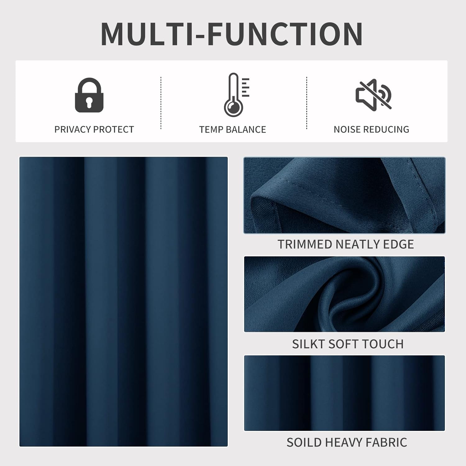 Joydeco Blackout Curtains 90 inch Long 2 Panels Set, Thermal Insulated Long Curtains & Drapes 2 Burg, Room Darkening Grommet Drapes for Bedroom Living Room Windows (W52 x L90 Inch, Navy Blue)